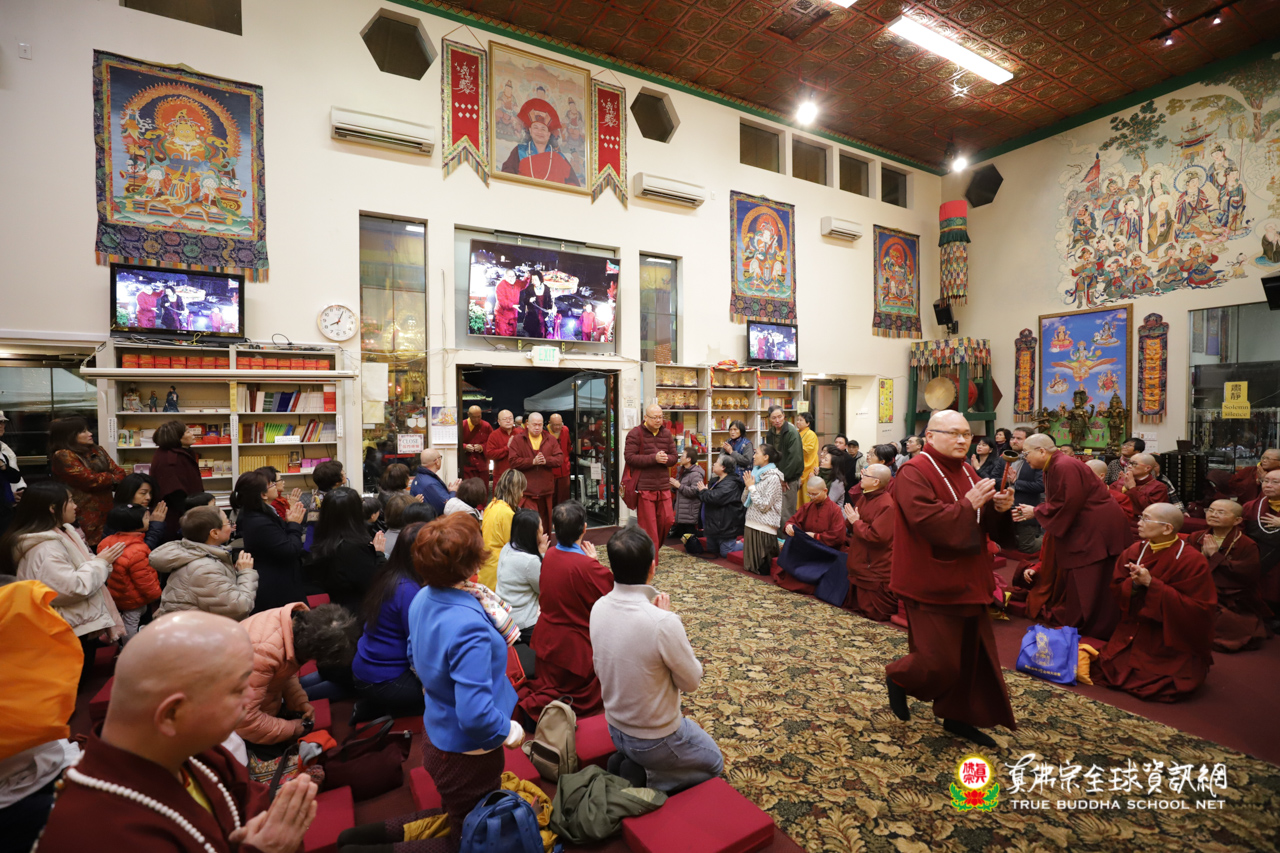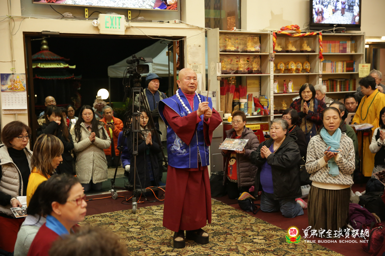 開示結束後,聖尊為大眾賜授皈依灌頂、加持大悲咒水和開光佛像,臨行前還慈悲一一為每位善信摩頂加持所求如願。步出廟外,迎著細細的雨絲,與聖尊走在同一個夜空下,呼吸同樣的空氣,感覺清淨美好的幸福,一心頂禮大恩根本傳承上師。