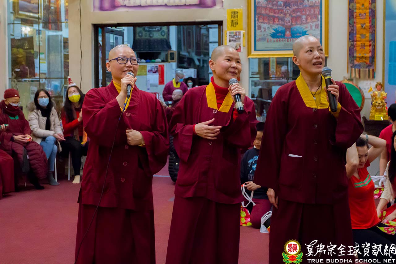大雄寶殿迴盪著歡樂的聖誕音樂,大眾熱情迎接師佛師母的蒞臨,在恭請師佛上了法座之後,師佛先頒獎給疫情期間負責網路直播等工作的義工們,他們盡心盡力協助推動西雅圖雷藏寺的菩提事業,在此疫情期間,不辭辛勞,排除萬難,讓所有網路上觀看的同門每次都能凖時看到師佛的風釆,與師佛一起同修,聆聽師佛的開示!