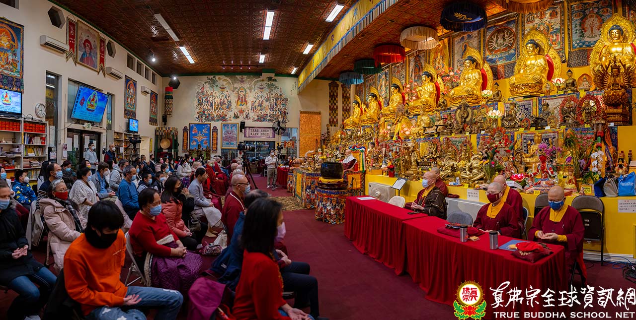 天寒地凍中,西雅圖雷藏寺燈火通明,殿內蓮花童子心咒響徹靜謐的夜,弟子們歡喜踴躍的迎接無上法王聖尊蓮生活佛盧勝彥到來,為大眾主持「蓮花童子本尊法」同修。