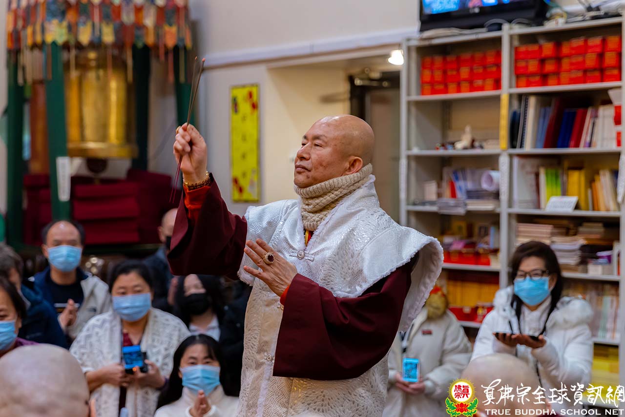 在精闢的法語開示結束後,聖尊慈悲加持現場及網路上的弟子。