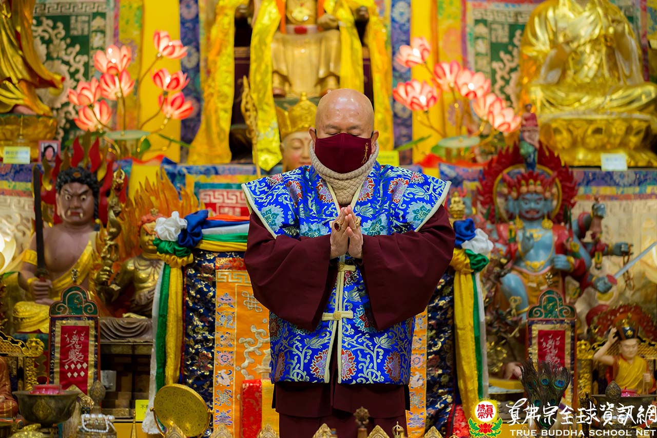 2022年1月1日星期六晚上八點於西雅圖雷藏寺,同修完藥師佛本尊法之後,蓮生活佛盧勝彥祈求藥師琉璃光王佛讓全世界的瘟疫、病毒剎那完全消失,祈請藥師琉璃光王佛放光接引有緣與無緣中陰往生琉璃光淨土,祈請藥師佛消除衆生的疾病。