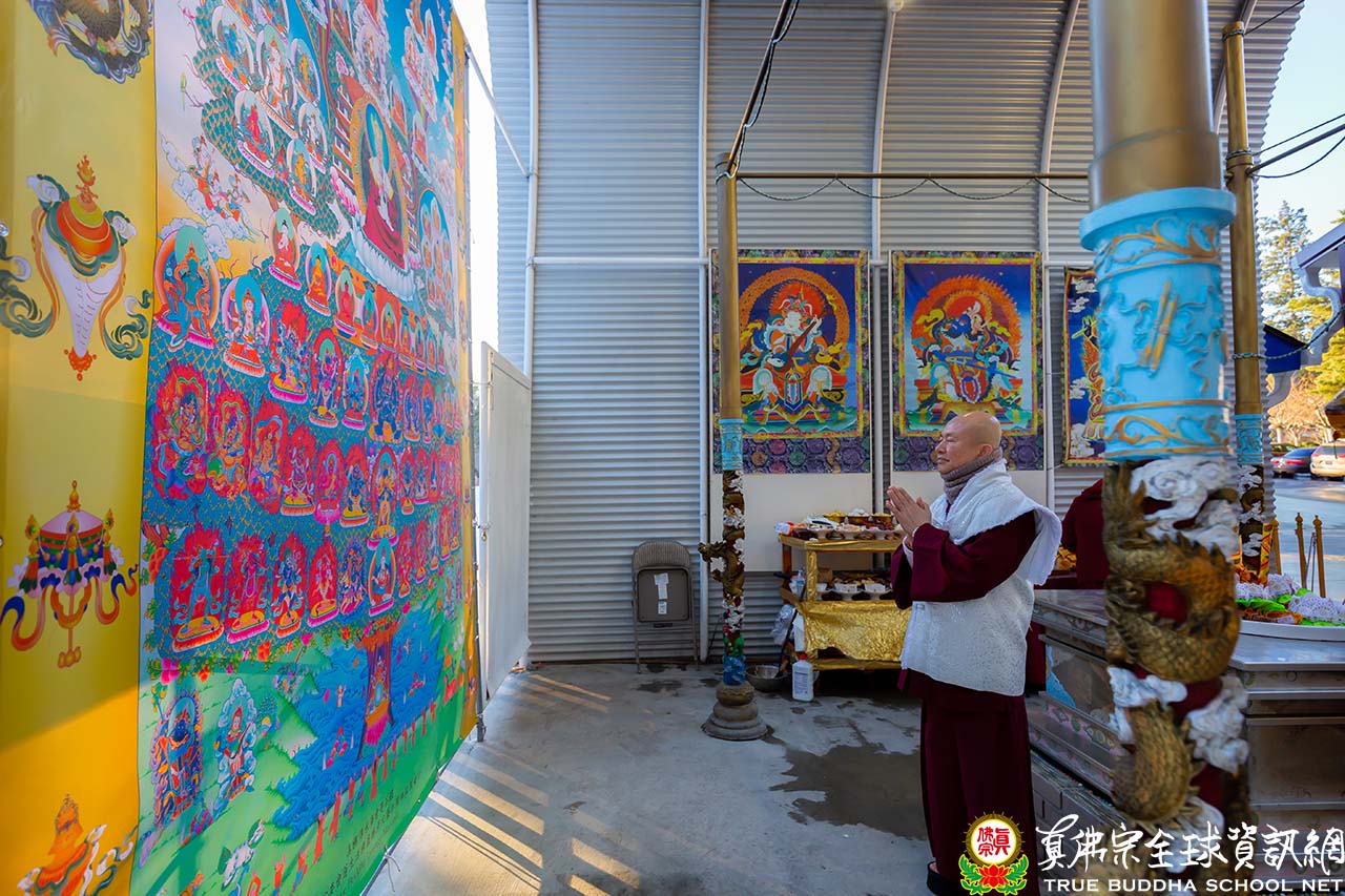 2022年1月9日下午三點,西雅圖的天氣依舊寒冷,但無阻弟子們參與法會的熱情與期待。法會開始前,大會司儀特意叮囑大家注意地滑,小心安全。隨著車子緩緩駛來,大家立即各就各位,恭迎最尊敬的根本傳承上師聖尊蓮生法王。法王帶領大眾頂禮壇城後,便與Zoom上弟子互相問好。隨後,司儀恭請法王上法座,蓮花童子護摩法會正式開始。