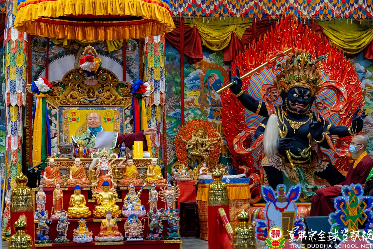 法會莊嚴進行,每次護摩火點燃的時刻都是希望與力量倍增的時刻,綠度母的降臨讓每個人感到遠離了天災人禍,消除了業障及煩惱,度母的慈悲感動了整個會場。法會後,法王首先介紹下個星期的護摩主尊是大力金剛。大力金剛是蓮花童子、阿彌陀佛、地藏王菩薩及瑤池金母四尊的表征,非常有力量,並且是真佛宗特聘的大護法。法王也講解了大力金剛的手印及咒語。