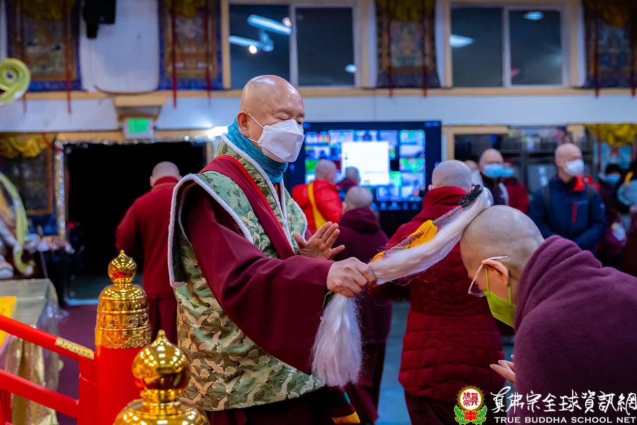 2022年01月16日,下午三點,西雅圖彩虹雷藏寺舉行了殊勝的綠度母護摩大法會,雖是一個寒冷的下午,當蓮生法王的車子緩緩的駛來時,大眾內心的溫度就隨之上升。在頂禮壇城後,法王與ZOOM線上的弟子們親切的打著招呼,這次線上的弟子也包括了在美國加州舉行書展活動的真佛般若藏的執行長周律師和很多的義工同門。每個人的臉上都掛著合不攏的笑容,那份喜悅感染了線上和現場的所有人。