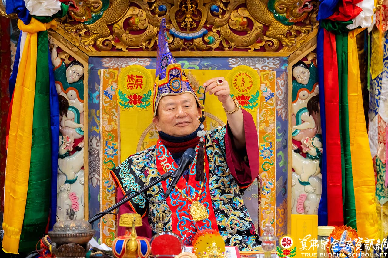 法王精闢的開示,有著一語道破夢中人的震撼。弟子們響起了歡喜、感恩、幸福的掌聲。接下來,法王為所有的與會者做了大幻化網金剛的灌頂,每個人滿懷欣喜的走過灌頂幡,在線上的弟子們也一同觀想著,祈禱著,雖然這不代表得到遙灌頂,但是強烈的法流迴蕩在世界的各個角落。灌頂後,聖尊再次熱切的和Zoom線上的弟子們告別,儘管目前很多人還無法親自前往參與法會,但相信虎年的曙光已至,願疫情早日遠離,而師徒相聚的日子早日到來。