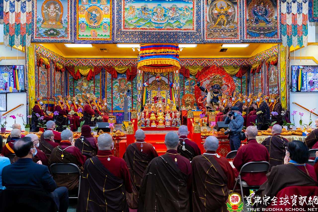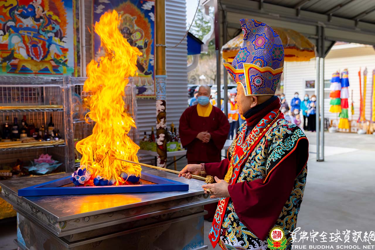 2022年02月13日下午三時,彩虹雷藏寺舉行了殊勝的大幻化網金剛護摩大法會,儘管疫情還未完全消除,但法王聖尊蓮生活佛慈悲,希望圓滿每一位眾生,主壇了這一場萬人期待的大法會,為弟子們加持,賜福健康平安。氣勢恢宏的大法會終於在兩年的隔離後回歸了眾人的視野,莊嚴的迎師團,三點時分準時出發了,浩浩蕩蕩的上師團隊伍緩慢莊嚴地向護摩殿行進,法王在隊伍的最後出現,虛空之中瑞雲千條,大日現出光環,光燦大地。護摩殿蓬蓽生輝,不僅現場爆滿, Zoom線上也有七百餘人,YouTube上有三千餘人共同參加當日的盛會。