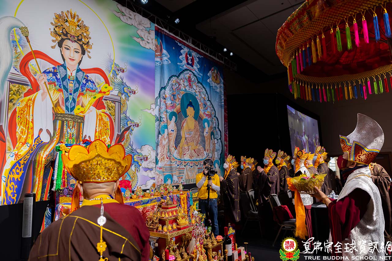法會最後,聖尊賜授「瑤池金母本尊法、瑤池金母八大法及瑤池金母馬上有錢法」灌頂給與會大眾,美國西雅圖雷藏寺壬寅年新春祈福大法會圓滿結束。感謝全球各地線上與親臨之所有真佛宗各級弘法人員、貴賓、同門善信共襄盛會,亦由衷感謝所有鼎力協助的弘法人員與義工同門。歷經兩年的新冠疫情,根本上師給予的不只是珍貴佛法的教授與傳承法流的加持,更是使我們的心有所依止,不致散亂。