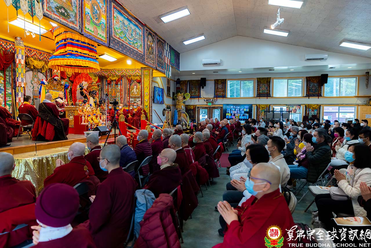 開示完畢後,法王帶領大家頂禮壇城,然後與Zoom上的弟子一一告別。再賜授現場與會大眾「不空羂索觀音法」灌頂後,本日法會也圓滿結束。