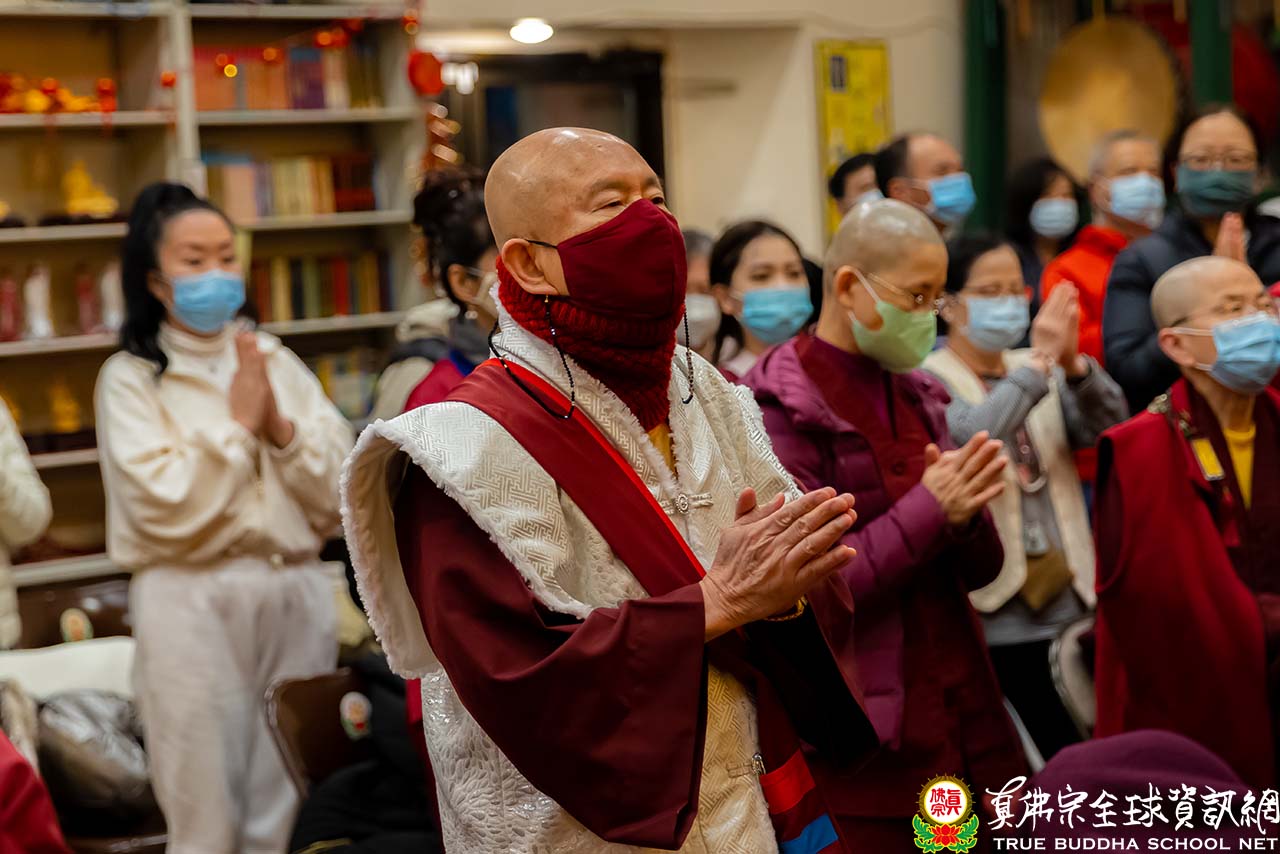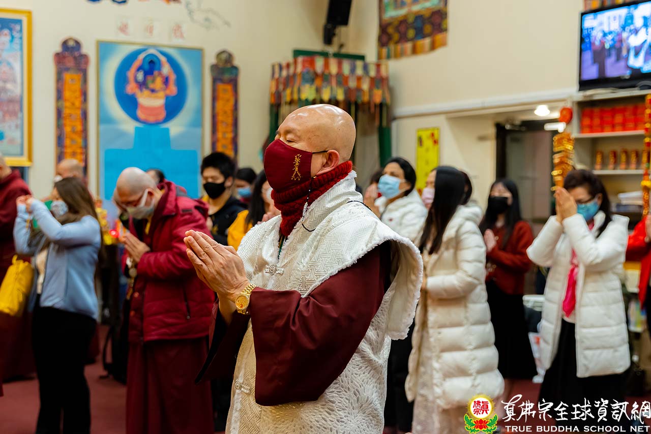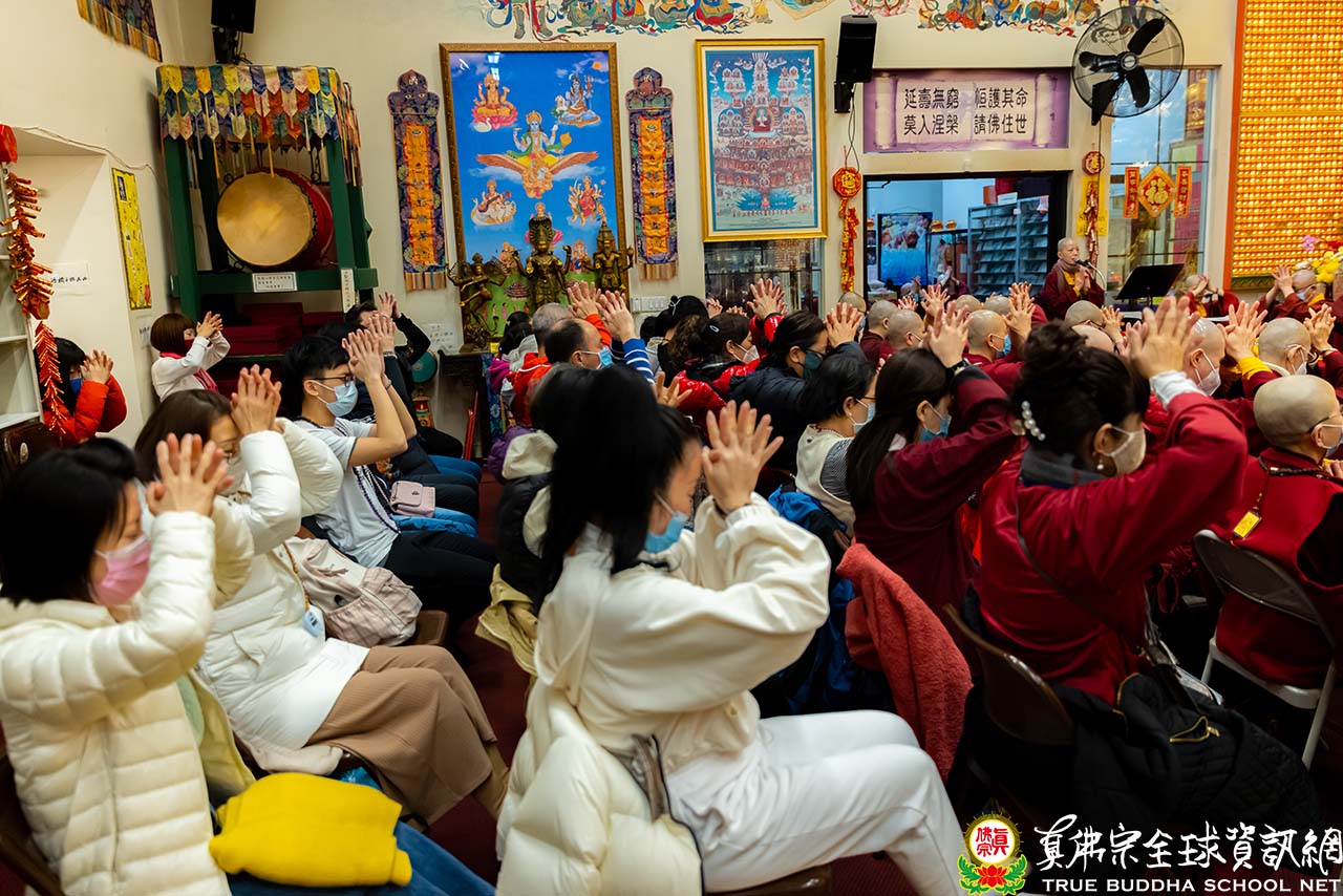 濛濛細雨中,西雅圖迎來春分的節氣,周六夜晚的雷藏寺熱鬧而溫馨。眾同門虔誠合掌,跟隨聖尊蓮生活佛盧勝彥一起頂禮壇城,進入同修。同修後大家專注地聆聽聖尊開示。