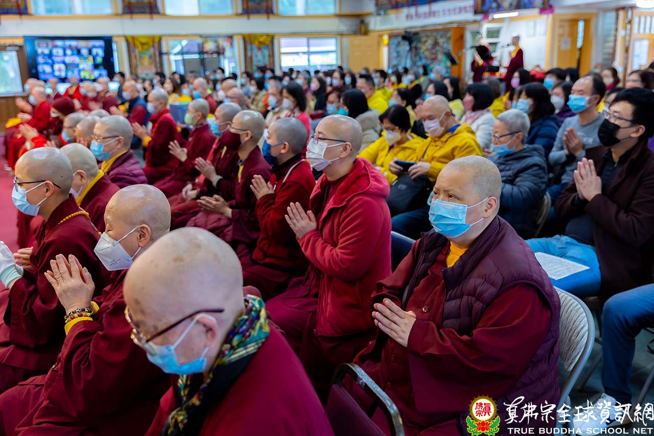 最後法王感歎,今天好像上演了一場戲,過去、現在及未來摻雜一片。生生世世的喜怒哀樂好像在短暫的時空內湧入了聖尊的記憶。這場不可思議的法會在懷念、思情中落幕,法王按照慣例和Zoom線上的弟子們親切的打著招呼,把時空的距離再次拉近。最後法王為現場的弟子們做了地藏王菩薩的灌頂。清明法會伴隨著天降的甘露圓滿結束,這甘露也許是悲情、也許是賜福、也許是清淨、也許只是也許,是空性。