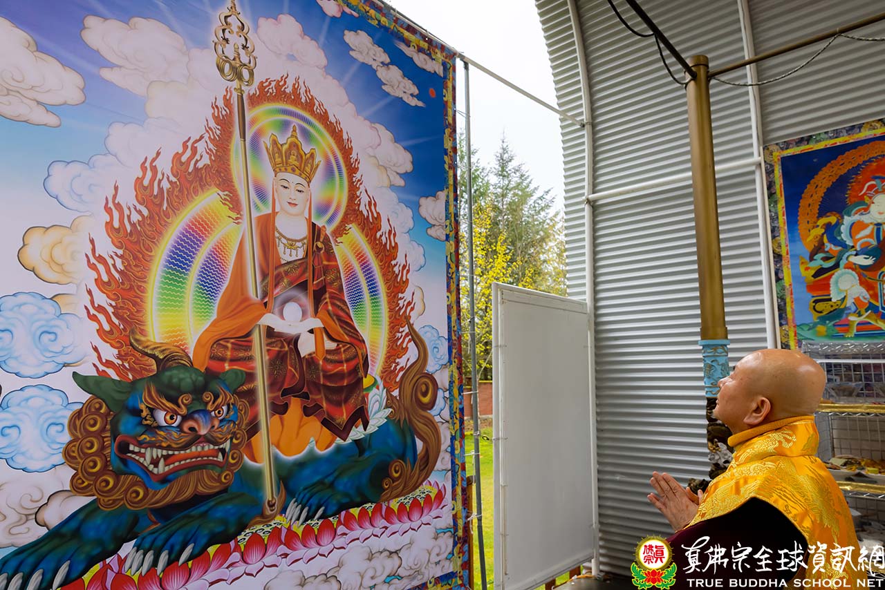 接下來,法王介紹今天護摩法會主尊「地藏王菩薩」以及九華山的來歷,是由行者金喬覺以身上的袈裟神變換來的,便在九華山建立了地藏菩薩的道場。蓮生法王開示今日護摩的覺受,在護摩開始的時候,地藏王菩薩現身告訴法王,祂在地獄道,法王在人道,地藏王菩薩是法王蓮生活佛的兄弟。地藏王菩薩的金剛號是悲願金剛,並且發的願是地獄不空誓不成佛,但地獄是永遠都不空的,法王感受到地藏王菩薩的悲心,便淚流滿面。