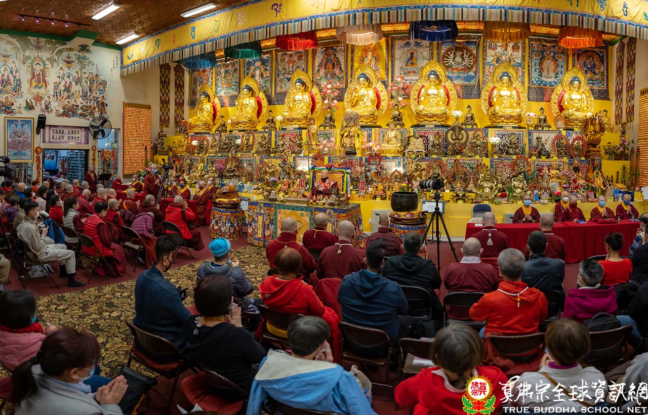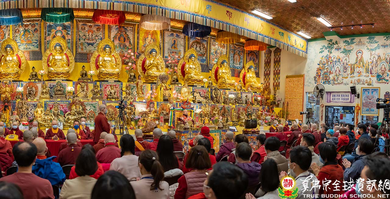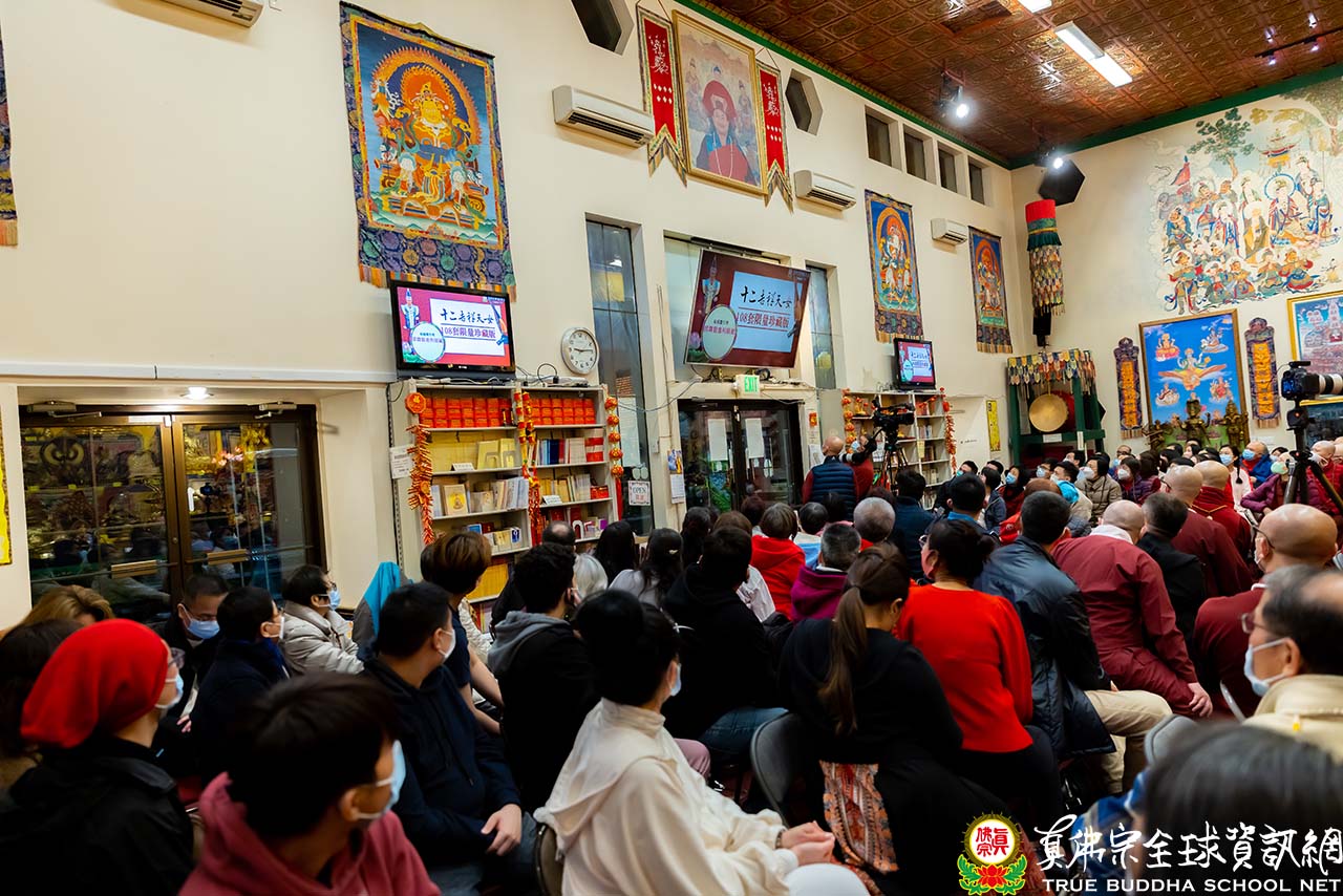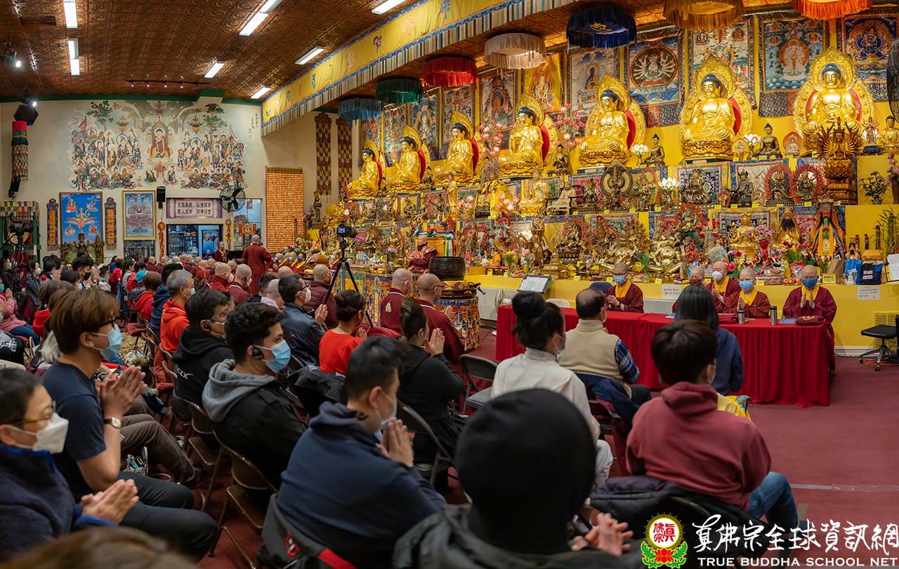 2022年4月16日,聖尊蓮生活佛盧勝彥於西雅圖雷藏寺帶領大眾同修蓮華生大士本尊法。今天非常熱鬧,來自世界各地的眾多善信紛紛聚集到祖廟來,同沾法喜、共沐佛恩。