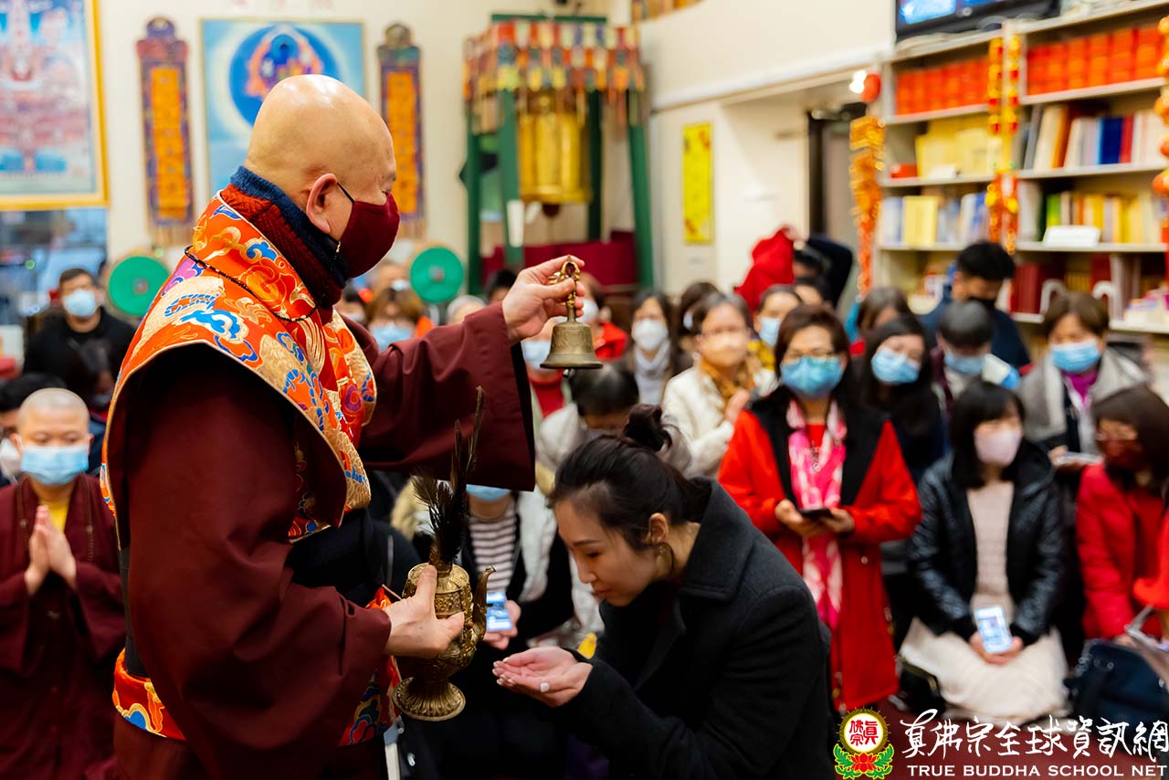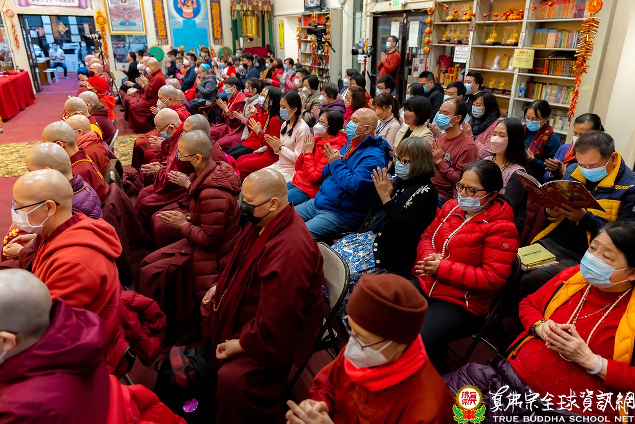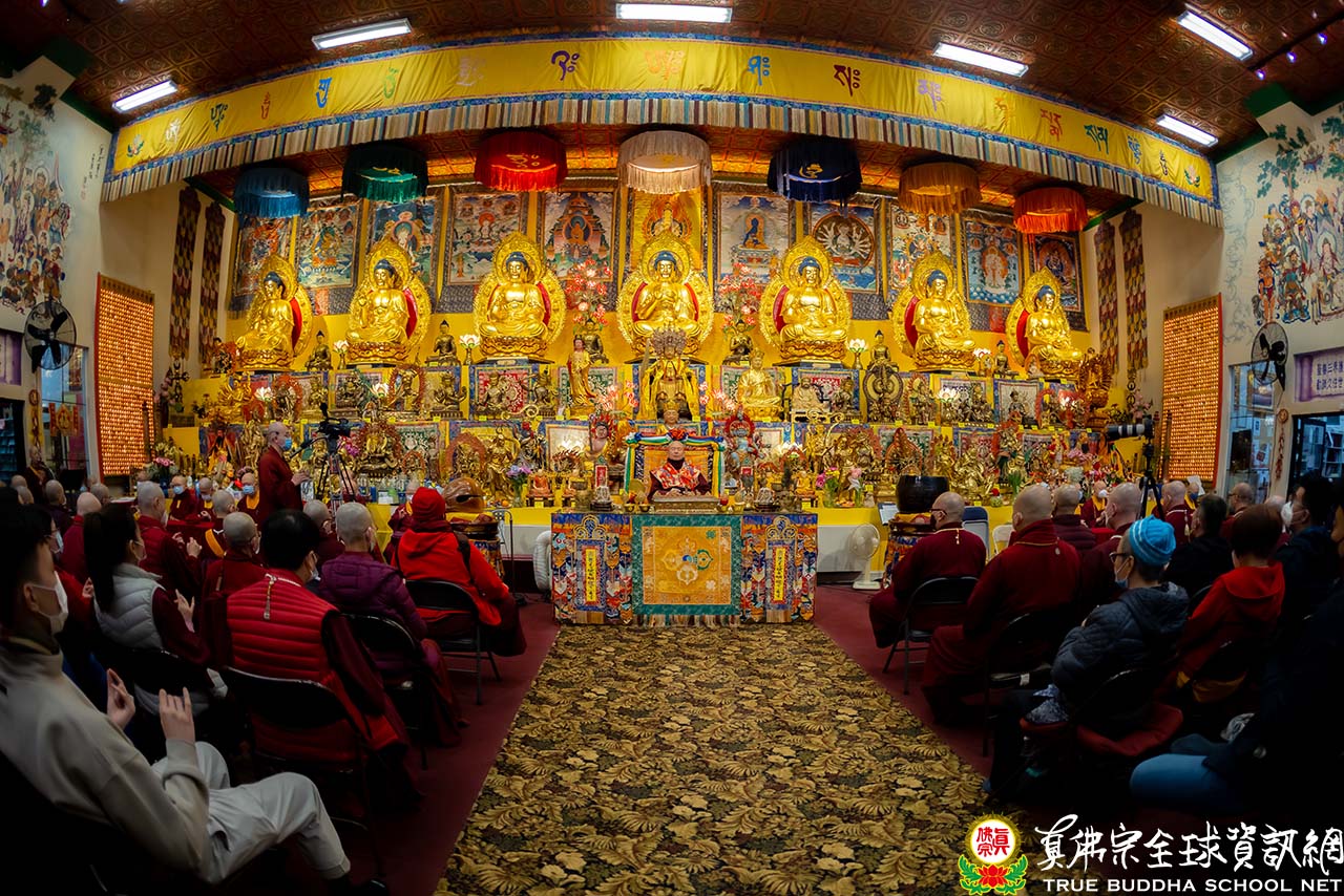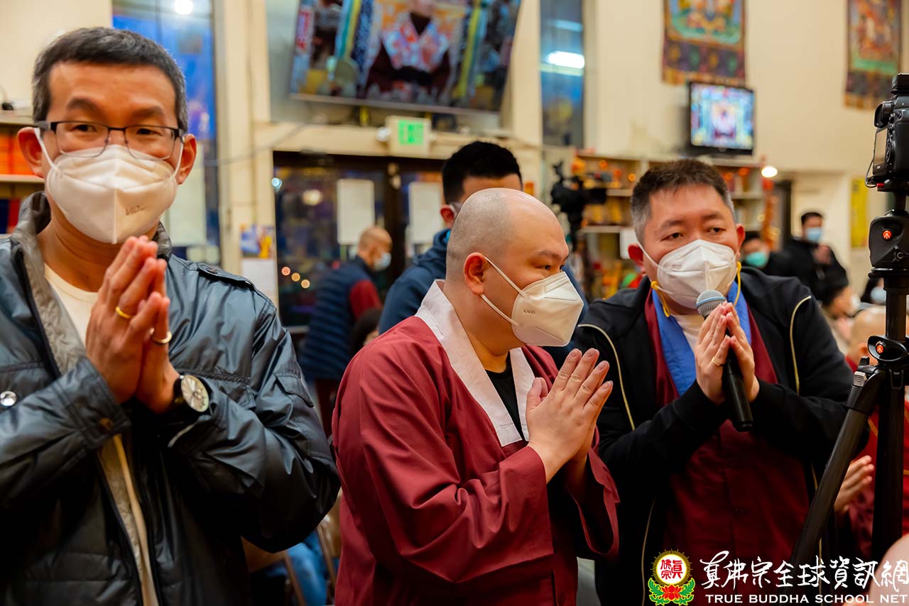 2022年4月16日,聖尊蓮生活佛盧勝彥於西雅圖雷藏寺帶領大眾同修蓮華生大士本尊法。今天非常熱鬧,來自世界各地的眾多善信紛紛聚集到祖廟來,同沾法喜、共沐佛恩。