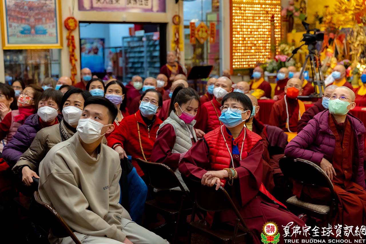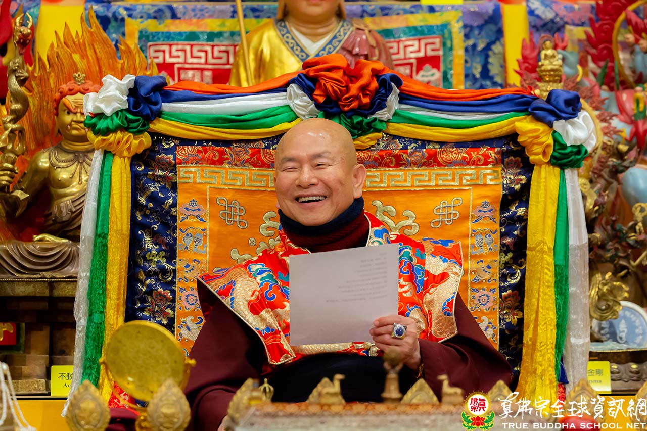 在圓滿肅穆的同修結束後,聖尊與大家一起觀賞由世界真佛宗宗務委員會所製作的十二吉祥天女卷軸畫作影片。聖尊創作了具有種種殊勝功德的十二吉祥天女的畫像,令人讚嘆不已!宗委會並推出「十二吉祥天女卷軸畫作」方案,呼籲大眾護持宗委會,攜手共轉真佛法輪,讓真佛密法永續傳承。