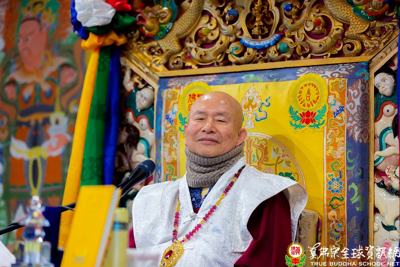 法王說就唸:「清淨,自性清淨,一切自性清淨。」這不僅是清淨護摩供品,也是自性清淨及一切的自性清淨。所有的外相都是一合相,分開都無自性。我們的眼耳鼻舌離開我們的身體,就不起作用了。全部分開後剩下的是什麼呢?就是佛性。什麼是法相?所有一切所看到的、所知道的都不是法相,只是凡夫覺得有。凡夫看到的,是一合相,佛陀所看到的是空,唯一的真實是佛性。清淨了就是佛性。吐登達爾吉上師往生的時候只留下兩個字就是「清淨」。儘管我們修的法也是假的,但是修了法,能夠清淨。而清淨幾分就可以得知是幾地的佛和菩薩。清淨一分即是歡喜地,清淨七分即是遠行地,清淨八分就是不動地,清淨的十地就是法雲地,十一地就是千手千眼觀世音菩薩,如此類推。眾生所看到的不是實相,清淨到最後,唯有佛性顯現。法王感歎,金剛經已經進入尾聲。西方極樂世界也是應化的,但是那邊是不退轉地。希望大家都可以修行證悟到極樂世界。各個佛菩薩都有自己的佛國淨土,儘管都是應化出來的,但是成就了,就可以成佛。要成就一定要清淨,以清淨分衡量行者到了哪個境界。