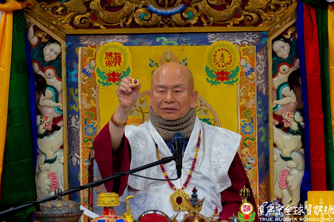 開示前,法王先通知大家下週,五月一日,是文殊師利菩薩的護摩法會。文殊菩薩是智慧第一的菩薩,也是智慧的象徵,法王介紹了菩薩的種子字,心咒和手印,並講解菩薩在華嚴世界不可思議的法力及功德,是華嚴三尊之一,也是法王子。