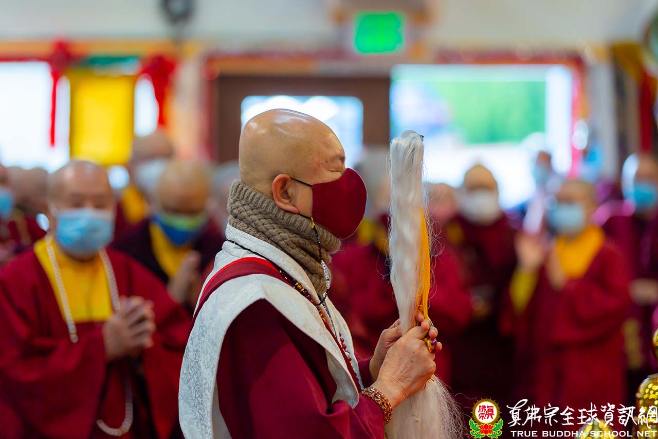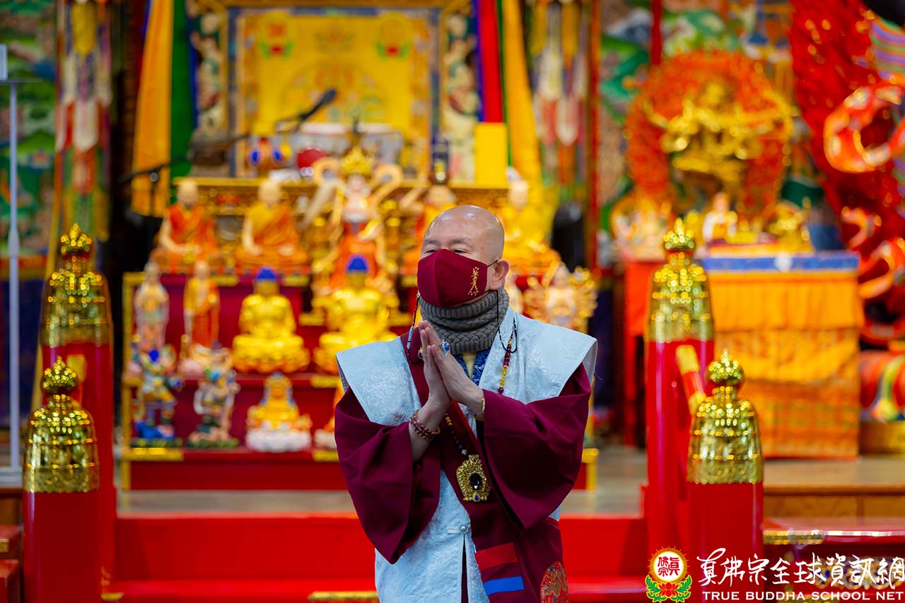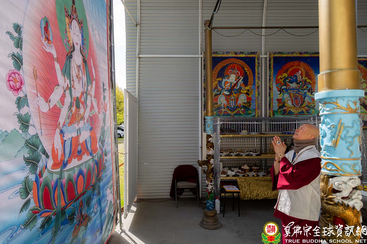 2022年4月24日下午三點,彩虹雷藏寺舉行了殊勝的尊胜佛母護摩法會。一個陽光明媚的下午,法王蓮生活佛身著白色龍袍出現在大眾的視野。頂禮壇城後,法王與Zoom線上的弟子們親切的打著招呼。護摩法會一如既往地莊嚴有力,熊熊的護摩火光明偏照,顯化著佛頂尊勝陀羅尼的大光明。