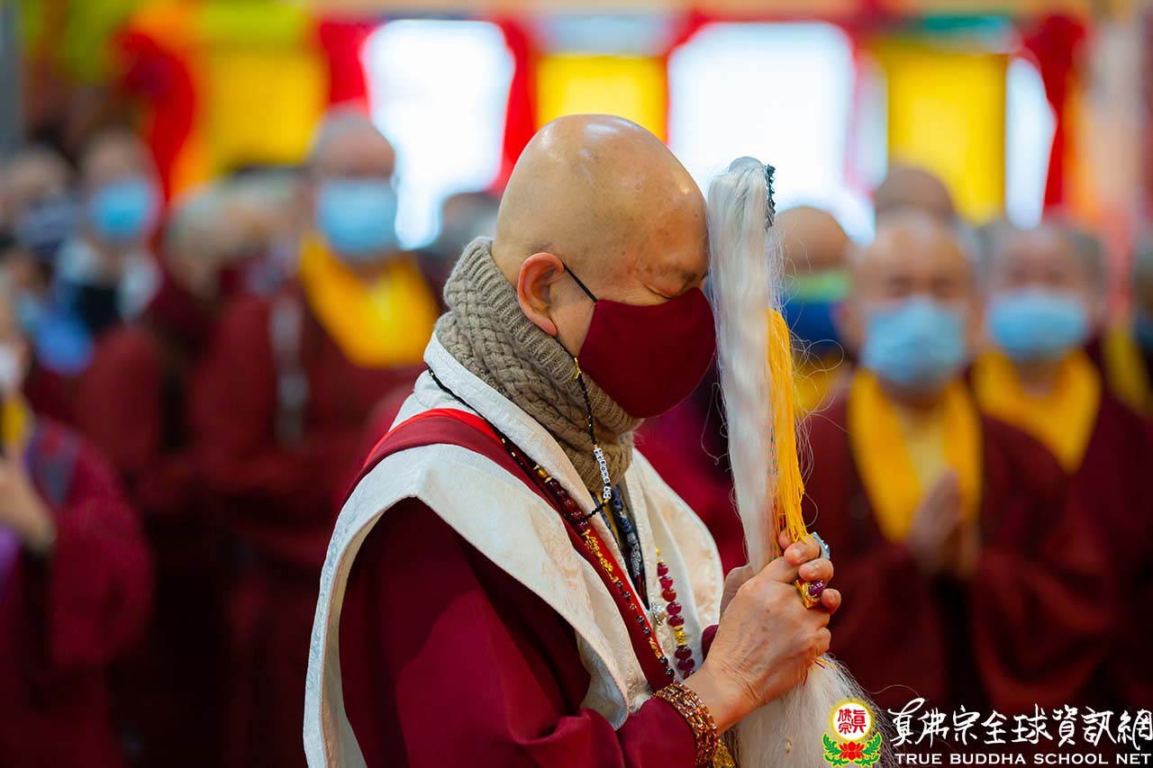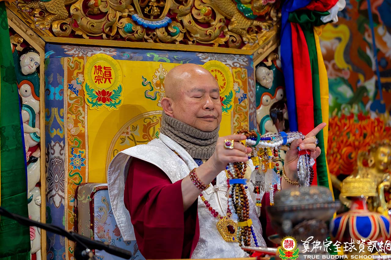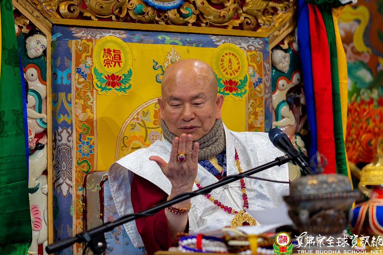在互動環節,有弟子來函問關於師尊的書籍中提及的:抓一把沙土、念21遍佛頂尊勝陀羅尼咒,撒在墳墓上面,往生者就得以往生佛國淨土。這位弟子的母親生病,她也是真佛宗弟子,可是這幾年長期臥病在床(患有失智症及其他毛病)。這位弟子想知道如果這個方法改成:抓一把米念21遍佛頂尊勝陀羅尼咒,撒在母親四周,是不是也可以讓母親的冤親債主、纏身靈離開母親,減輕母親的孽障,讓她少受罪。這位弟子希望可以減輕母親的苦痛,讓她早日康復。並且也每天都有在修持煙供法迴向給家人。祈求師尊慈悲開示這個尊勝佛母陀羅尼的方法,不知這樣做是否如法。
