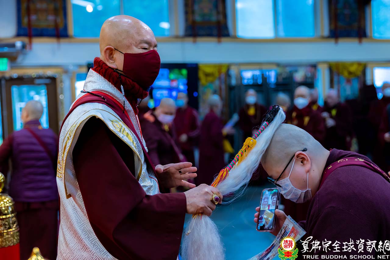 法王開示完畢,也象徵著大吉祥天女護摩法會的圓滿結束。禮拜壇城後,法王與眾多線上弟子揮手祝福,眾等無不歡喜感恩!法王賜授在場弟子大吉祥天女灌頂,法會圓滿結束。
