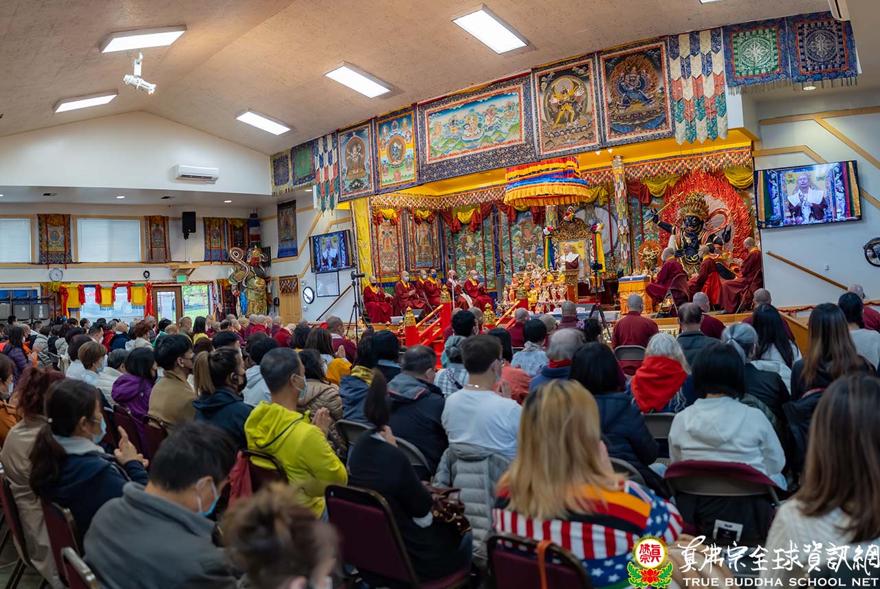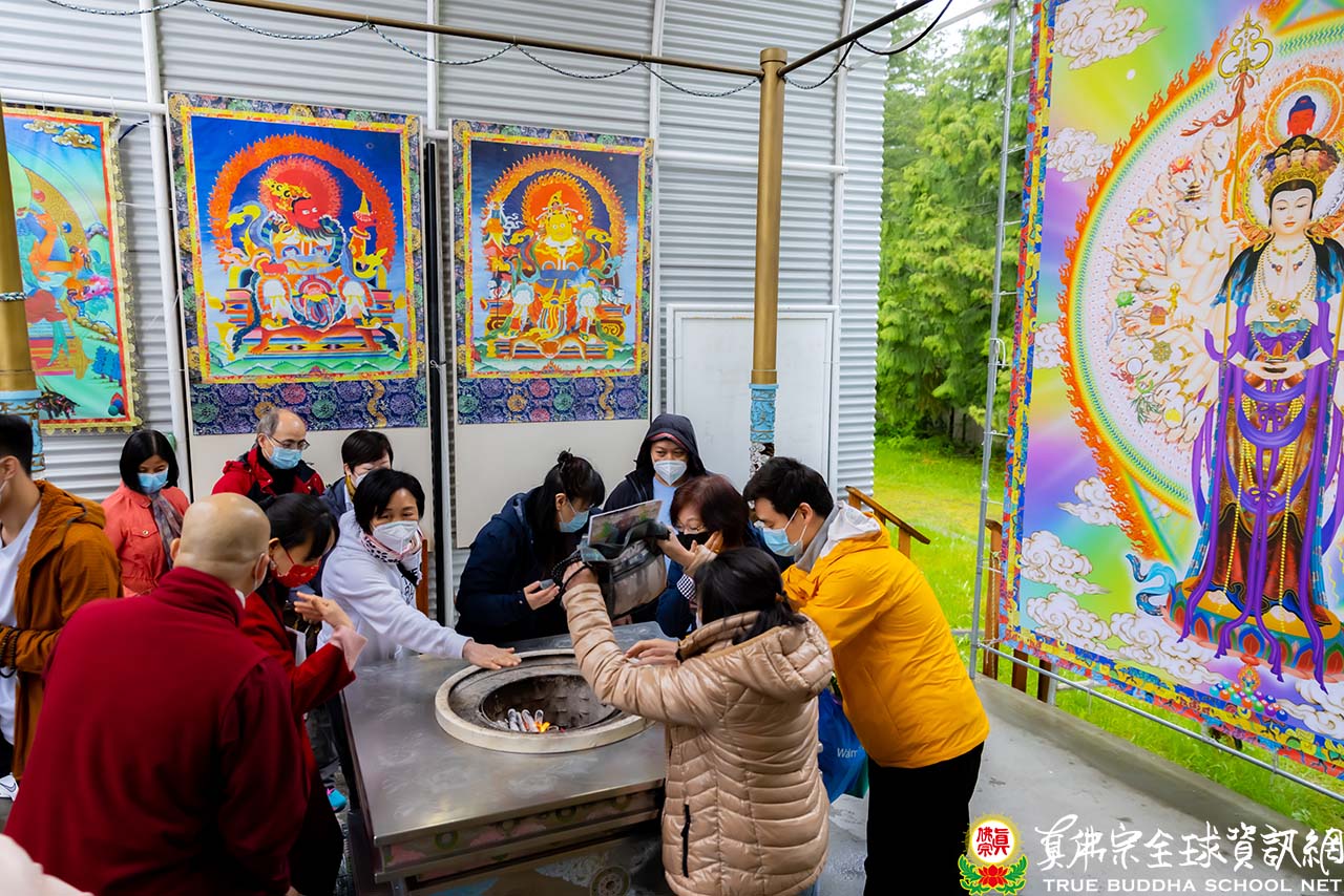 法王結束精彩的法語開示後,便與Zoom上弟子一一道別。隨後,法王賜授現場與會大眾「千手千眼觀世音菩薩法」灌頂,是日法會便完滿結束。