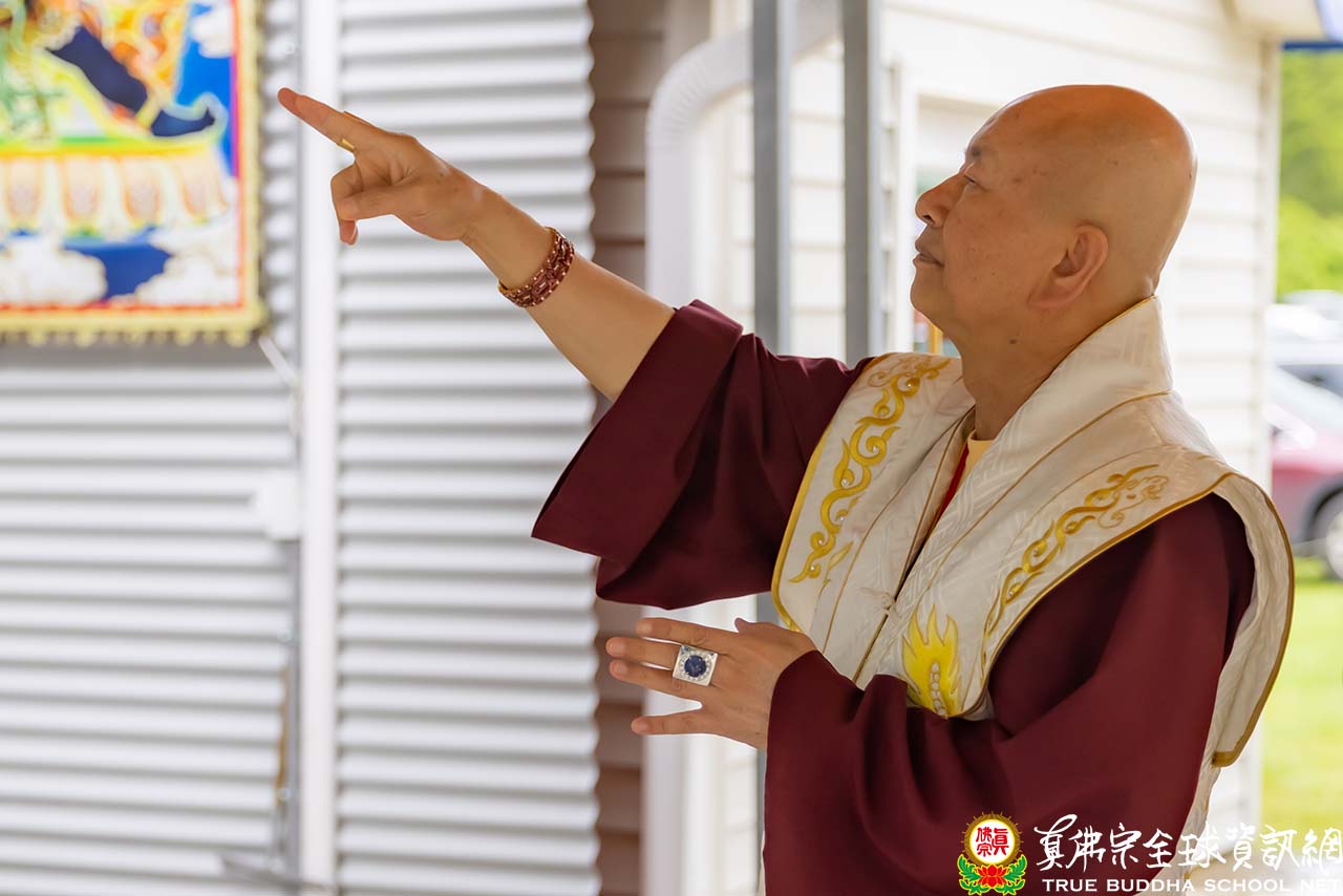 隨後,法王開示當日護摩主尊「千手千眼觀世音菩薩」總攝五部——佛部、蓮花部、金剛部、寶部及羯摩部。法王也提到有一次在凌晨兩點至三點時修法,由於太疲倦而陷入睡眠中。當法王睜開眼睛,映入眼簾的是千手千眼觀世音菩薩利用祂的千手牽著千艘法船,等待法王醒來。法王心中盡是感激,同時也請千手千眼觀世音菩薩將這千艘法船送至西方極樂世界——阿彌陀佛的淨土。法王更提到千艘法船超度中,千手千眼觀世音菩薩是最常出現,常有靈感,除了總攝五部,息災、增益、敬愛、降伏皆能圓滿。