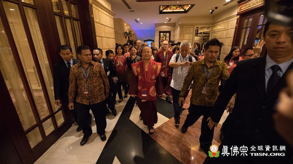 2018年12月6日清晨,聖尊師母與侍者團等一行,自桃園過境旅館離開,出發前往機場,而是日的大型飛機,似乎全部被真佛宗派包機似的,全機到處充滿本宗上師、法師與同門,於當天下午抵達雅加達機場。現場數千人熱烈接機!聖尊師母於機場與主辦單位眾代表合影留念。現場人聲早已鼎沸,機場內人人高喊:「歡迎師尊師母蒞臨印尼!」、「想念師尊!」