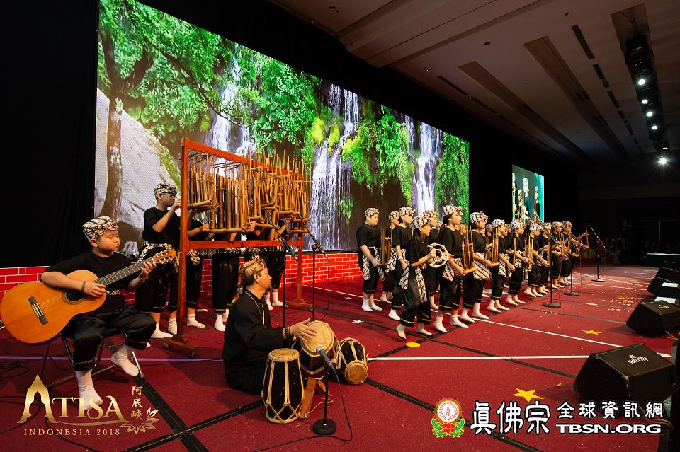 最後,聖尊應邀致詞,聖尊感謝今天晚上的主辦單位、也感謝華光印尼敬德學校。聖尊稱讚他們唱歌都非常好聽,並表示佛教學校在印尼能夠成功,真是不容易。聖尊希望這所學校的精神能夠發揚全世界。聖尊覺得敬德學校的學生人人精神煥發、充滿朝氣,他今天晚上看到這一幕,非常感動。最後,聖尊再次謝謝華光印尼敬德學校,其校長與老師承辦此學校,非常好。