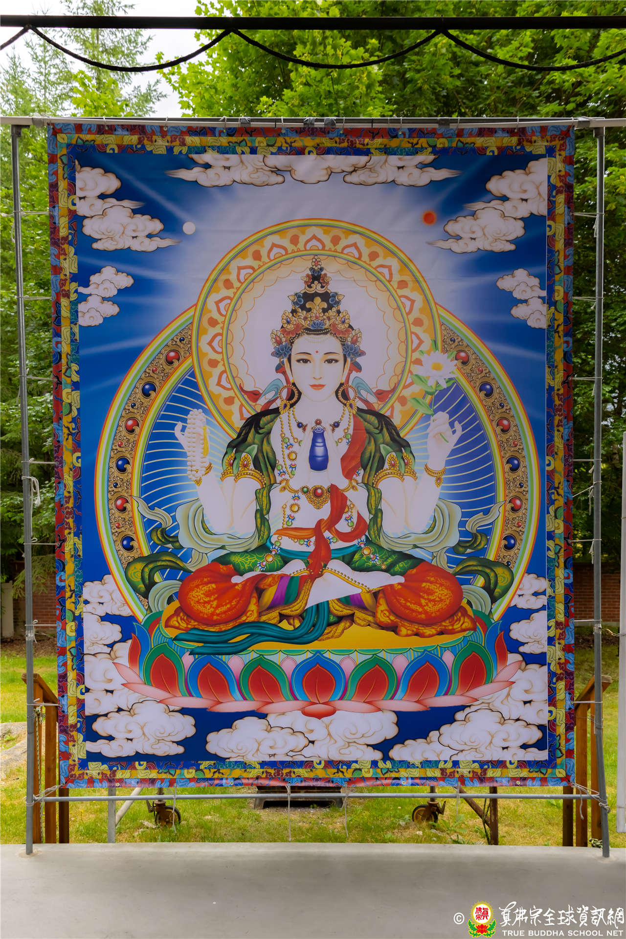 菩薩的四無畏,就是以上四點。法王語重心長的告誡弟子們要守戒,精進及懂得感恩。聖尊的法語讓弟子們深思反省,法味濃濃。法會後聖尊與Zoom線上的弟子們揮手告別,但願不久的將來就是重逢的季節。最後法王為現場的弟子們做了觀世音菩薩法灌頂,法會就此圓滿落幕。