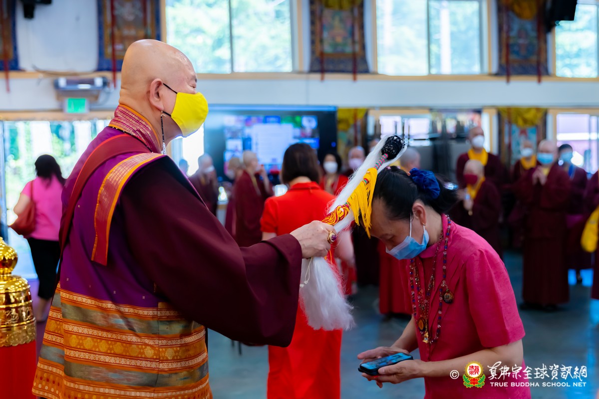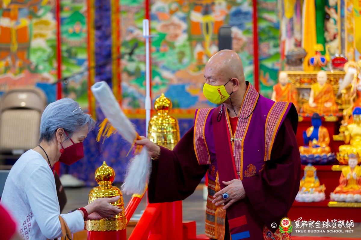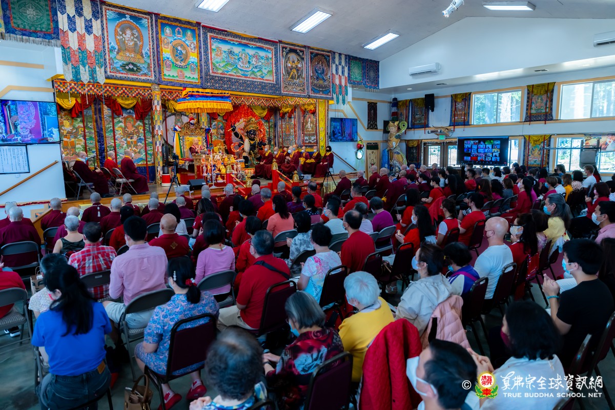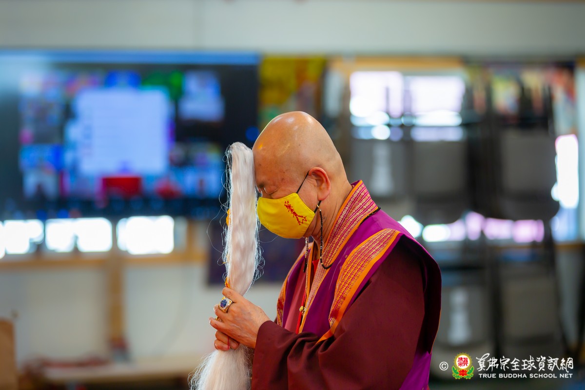開示結束後,法王帶領大眾頂禮壇城,然後與Zoom雲端的弟子溫馨道別。接著,法王給現場與會大眾賜授「愛染明王法」灌頂,殊勝的愛染明王護摩法會在灌頂結束後也圓滿落幕。