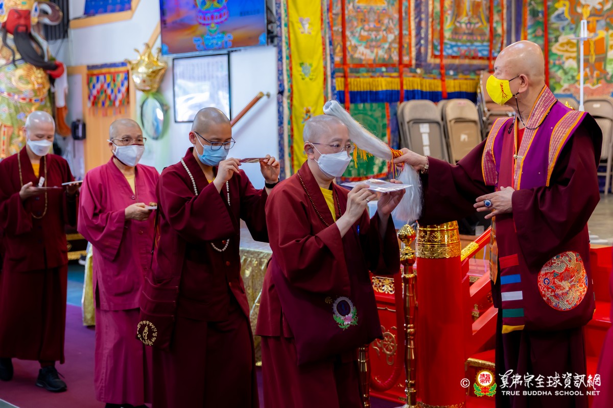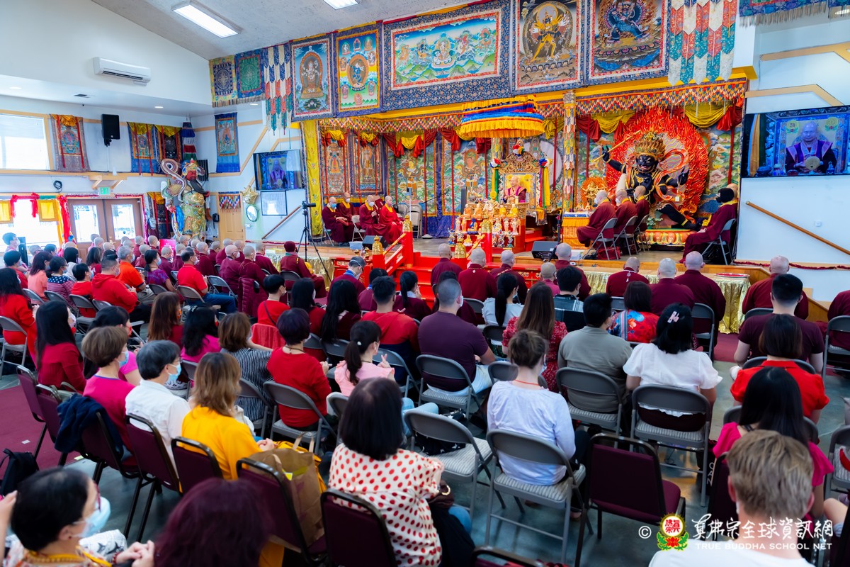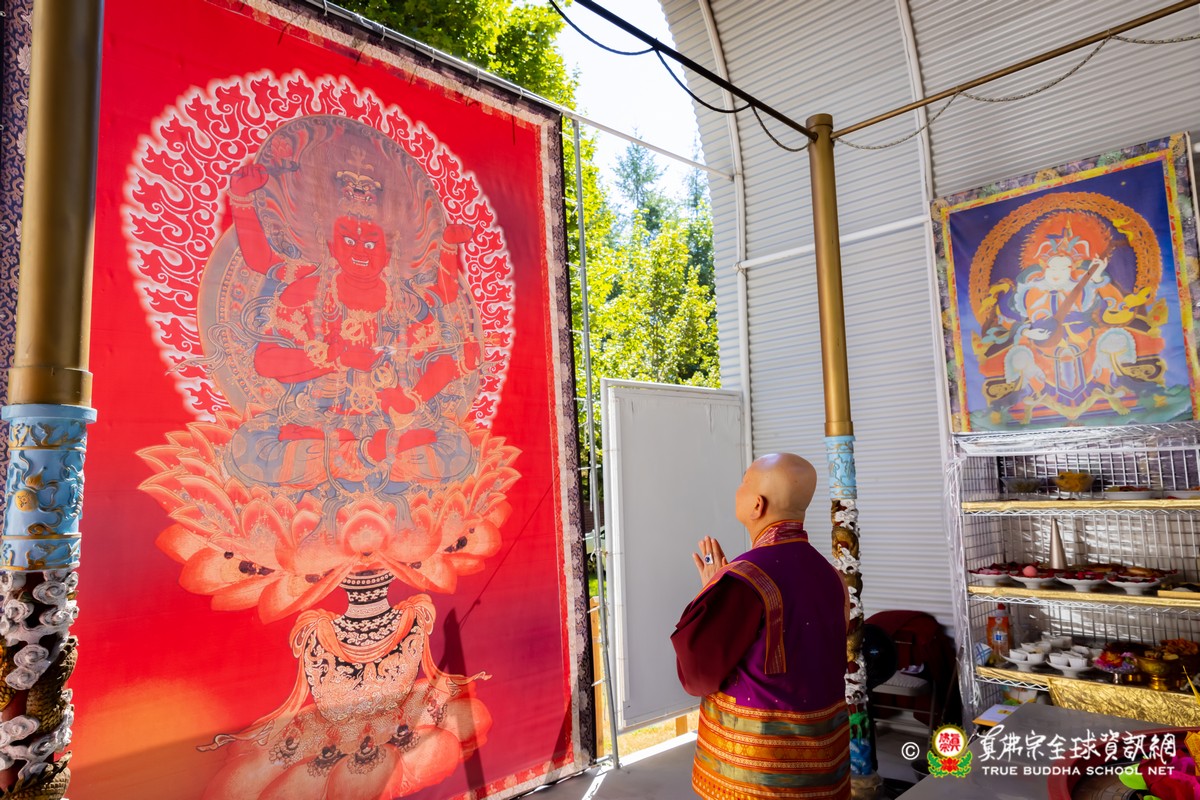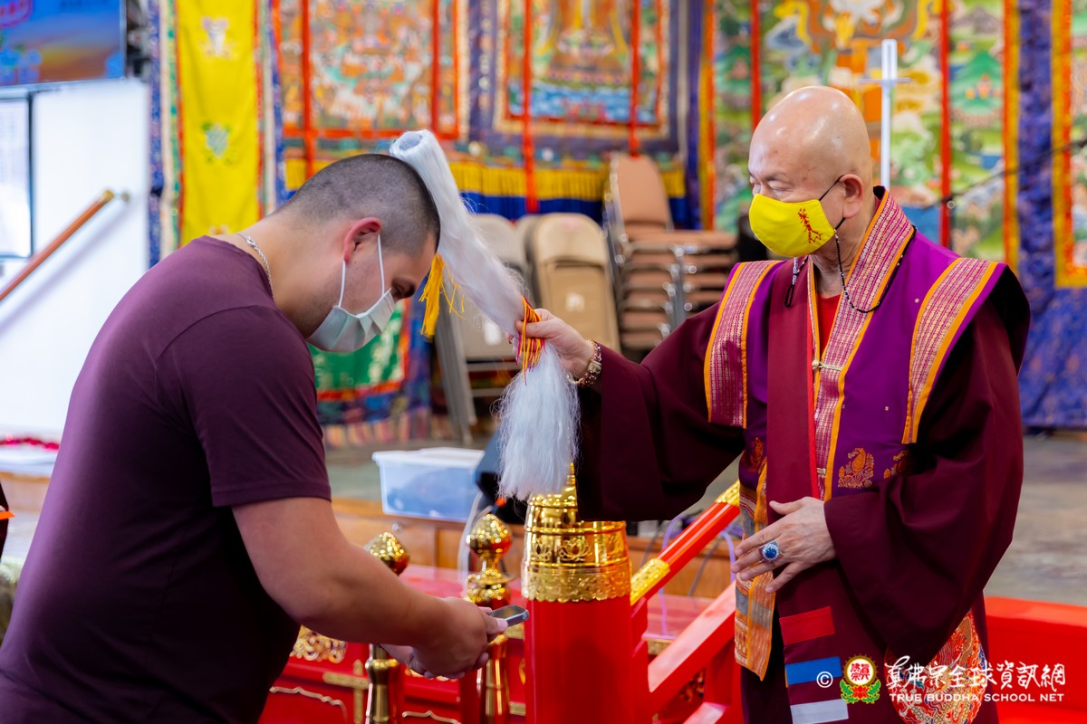 開示結束後,法王帶領大眾頂禮壇城,然後與Zoom雲端的弟子溫馨道別。接著,法王給現場與會大眾賜授「愛染明王法」灌頂,殊勝的愛染明王護摩法會在灌頂結束後也圓滿落幕。