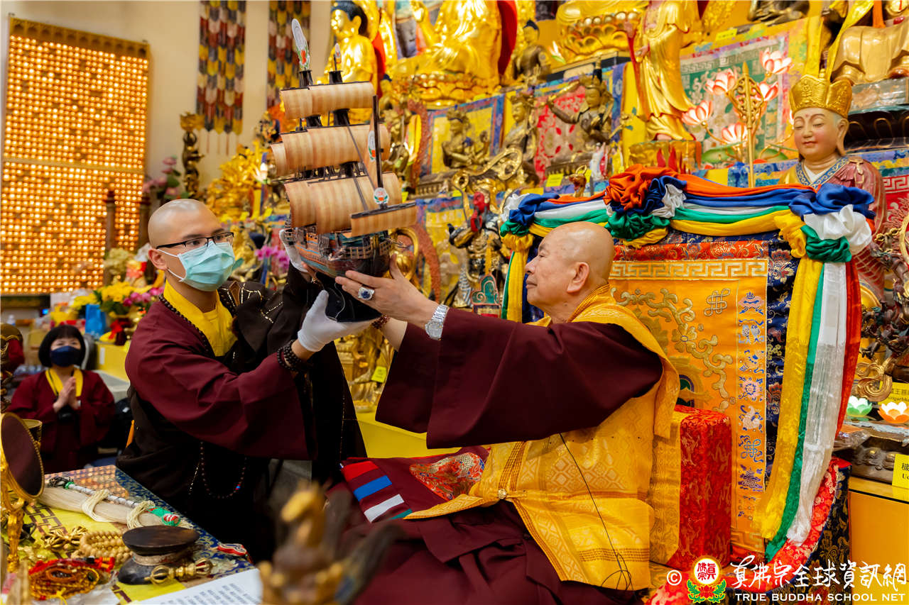 同修結束後,舉行西雅圖雷藏寺與彩虹雷藏寺的聯合請法儀式,眾上師及法師以最莊嚴肅穆的恭敬心,祈請聖尊蓮生活佛主持2022年8月20日西雅圖雷藏寺壬寅年阿彌陀佛息災祈福暨千艘法船接引超度大法會,及8月21日彩虹雷藏寺瑤池金母護摩大法會,透過無遠弗屆的全球直播,大眾共同虔敬祈請,並感恩聖尊以無盡的菩提心力,慈悲威神之力主持這二場大法會,佛光注照眾等息災祈福,並超度祖先等眾靈往生西方極樂世界。