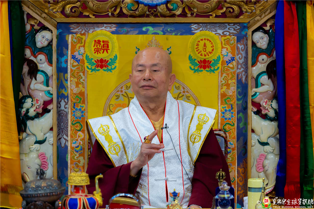 最後法王移駕到Zoom前與弟子們互動,弟子們誠摯地感恩法王開示,法王慈悲加持祝福現場及網路上所有弟子都能得到「不空羂索觀音」加持護佑,眾現場弟子接受法王的「不空羂索觀音」灌頂,法會圓滿結束。