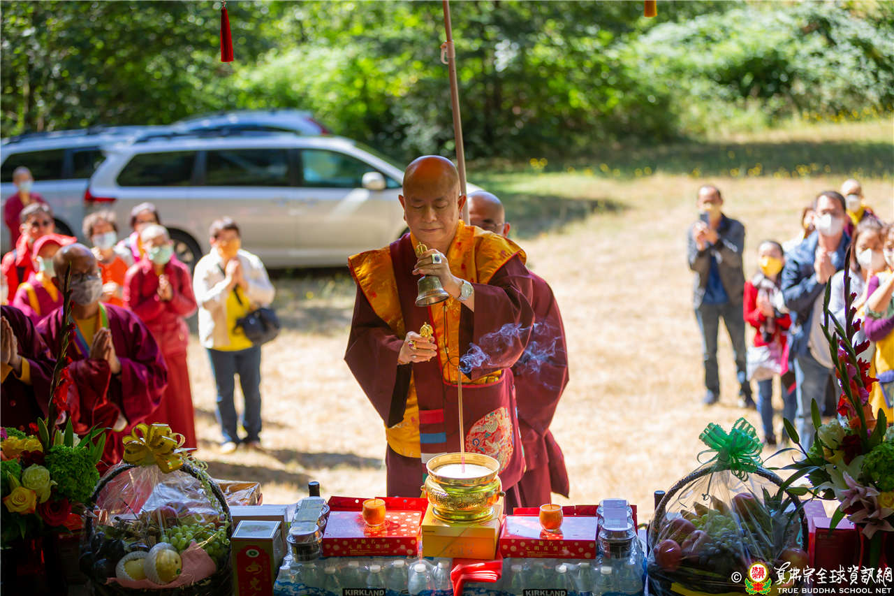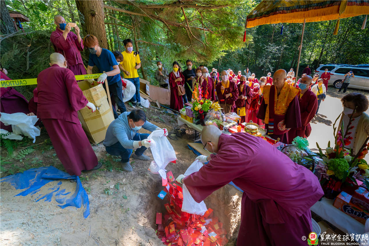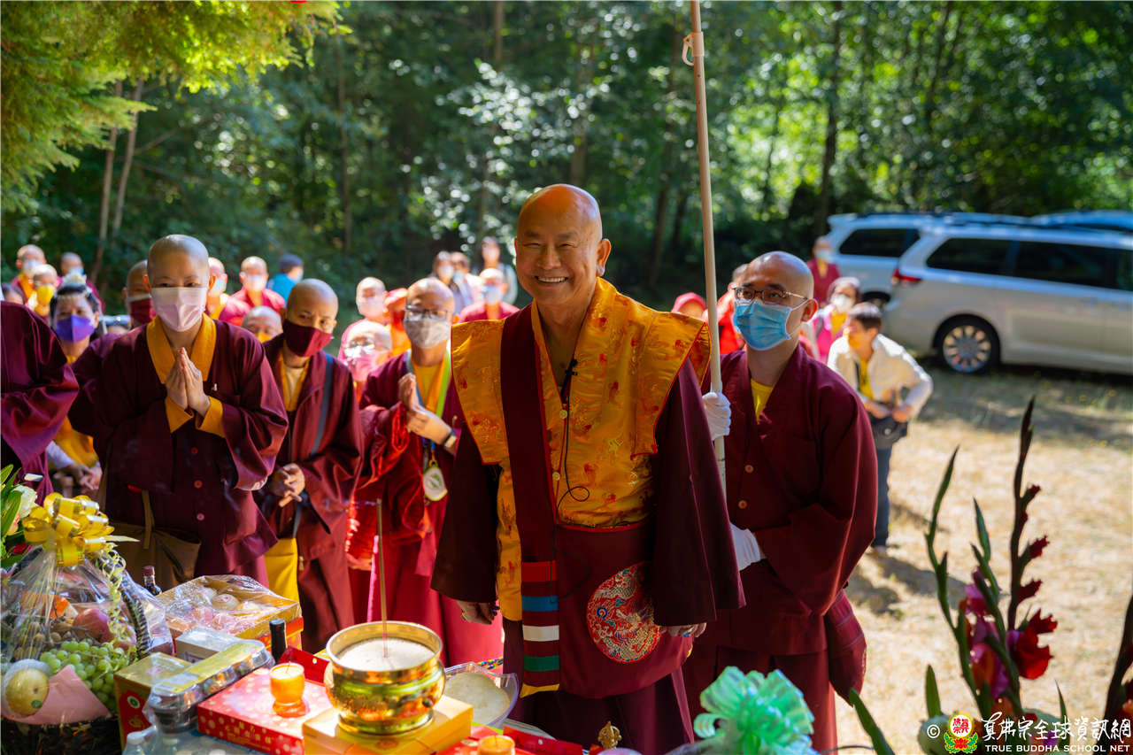 2022年8月28日蓮生活佛於美國西雅圖彩虹雷藏寺師尊主持生基儀式,多位真佛宗同門拍到放光照片!
