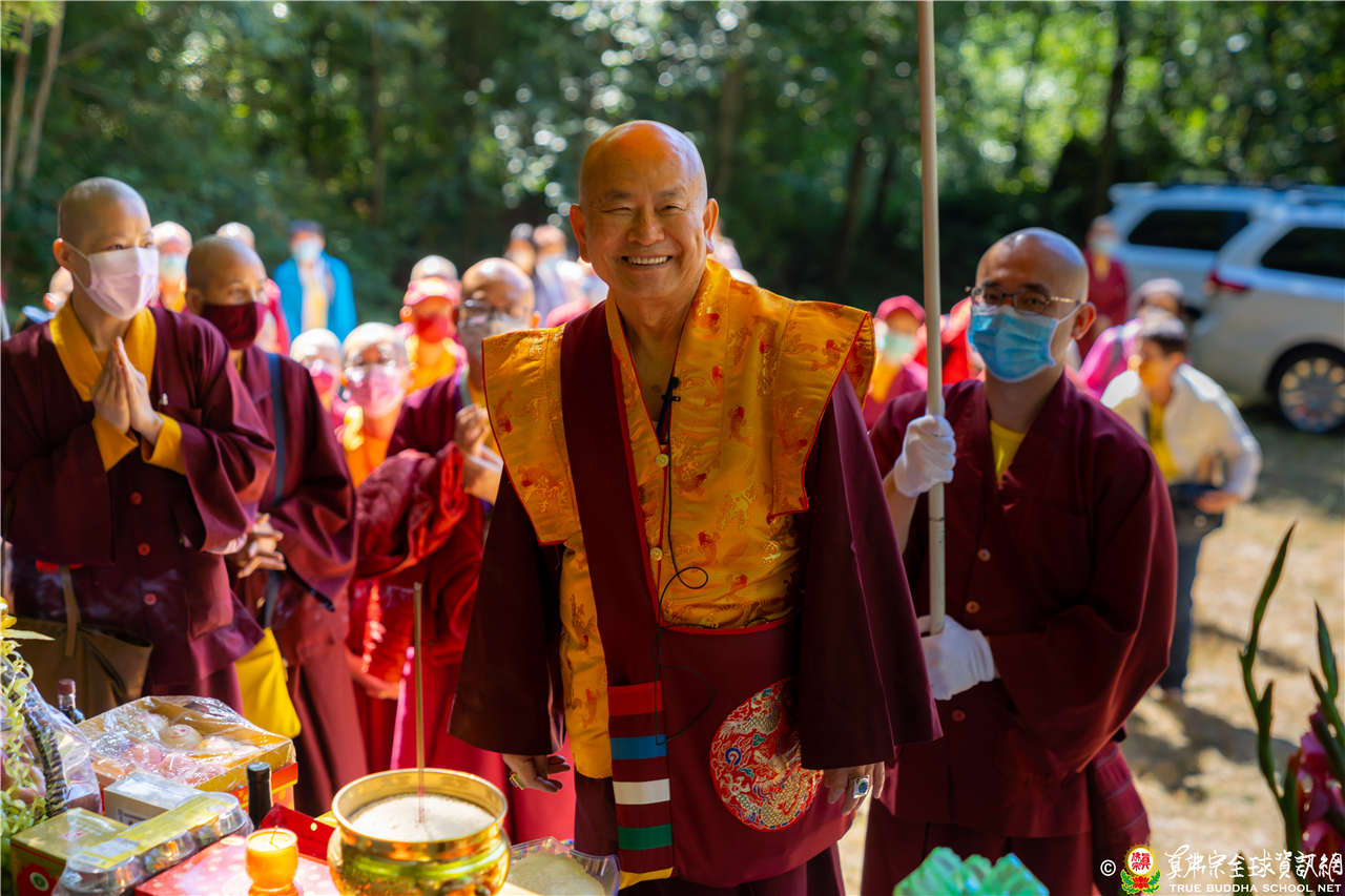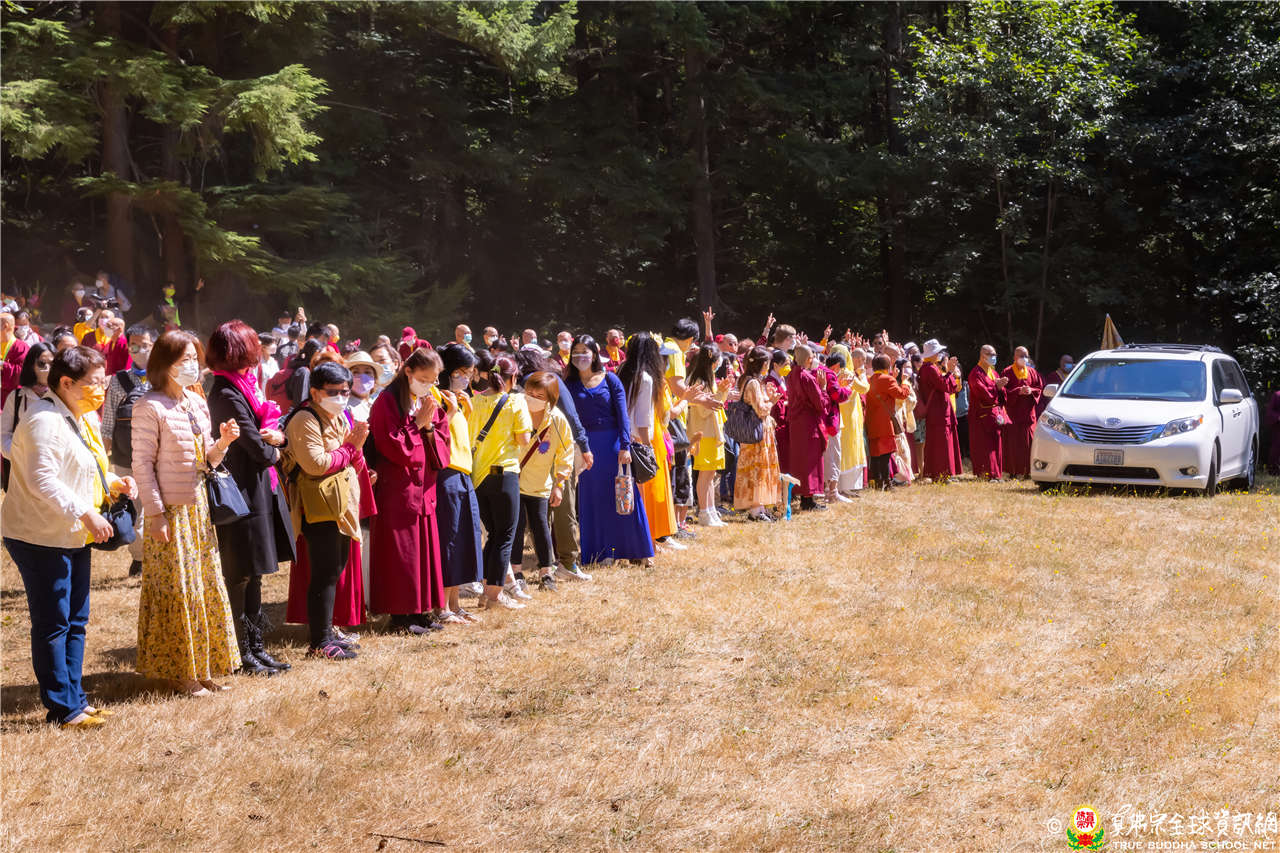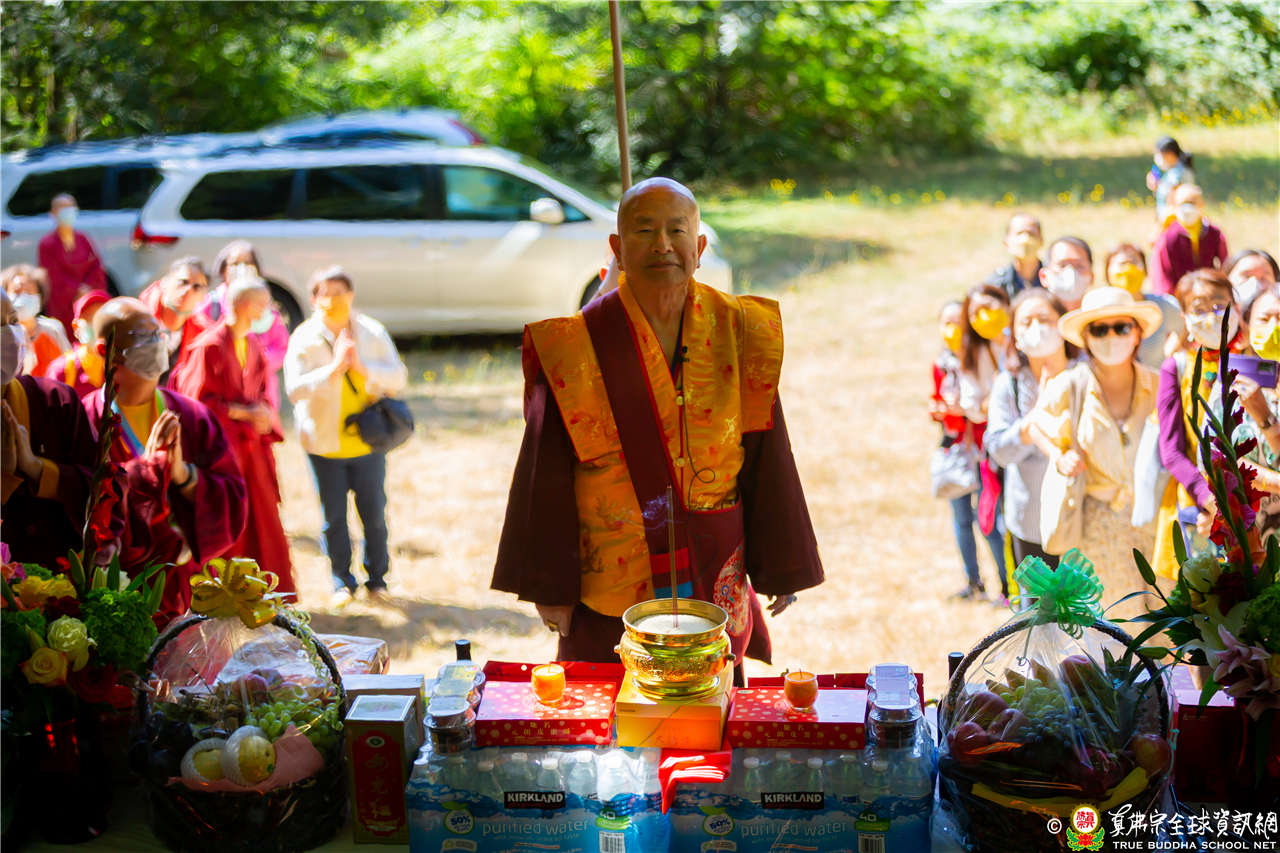 2022年8月28日蓮生活佛於美國西雅圖彩虹雷藏寺師尊主持生基儀式,多位真佛宗同門拍到放光照片!