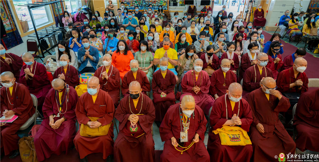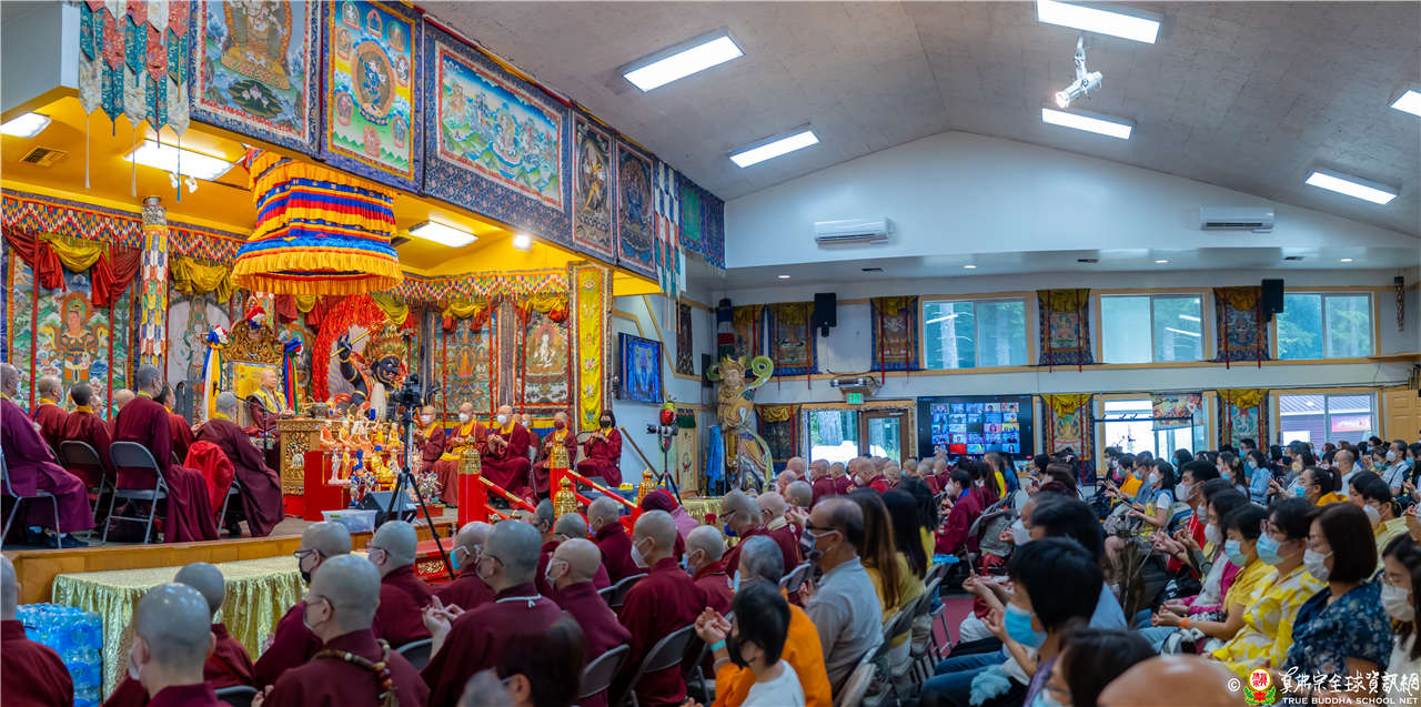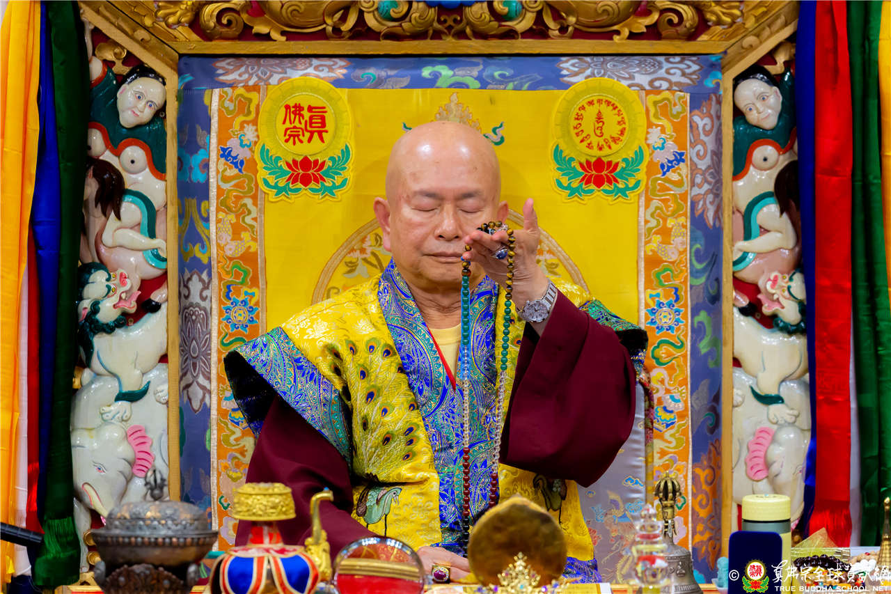最後法王移駕到Zoom前接受弟子的感恩與祝福,弟子們紛紛在鏡頭前感謝法王。現場眾弟子接受法王的「孔雀明王」灌頂,法會圓滿結束。