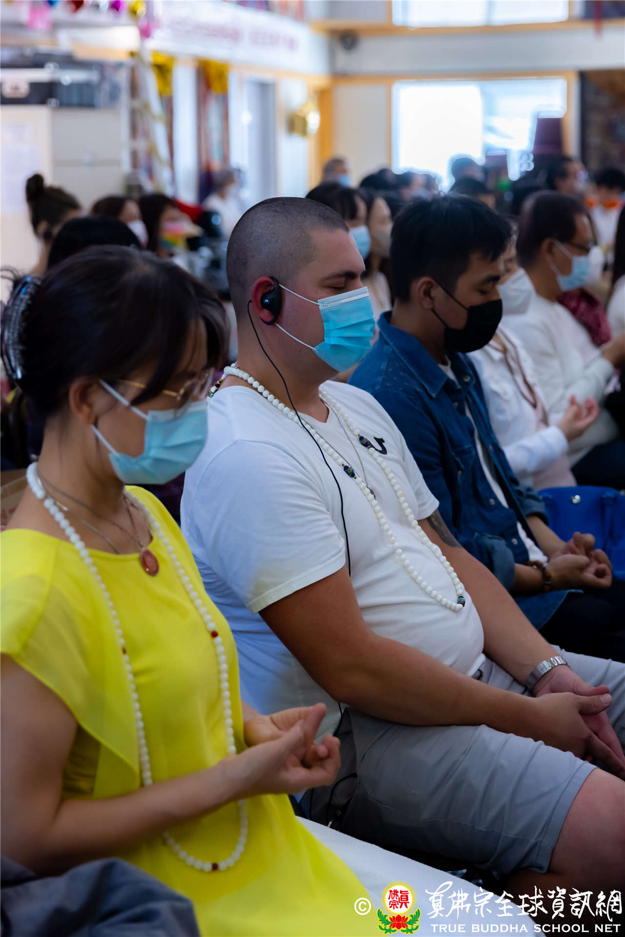 法王的開示簡單明了,讓大眾茅塞頓開,印象深刻。大眾在等、不等、等不等,貌似語言遊戲的語句中,深有所悟,滿懷歡喜的接受了大白蓮花童子的傳承灌頂。最後法王親切的與Zoom線上的弟子們揮手告別,揮灑著加持、揮灑著愛心、揮灑著智慧,讓我們下個星期同一時間,同一地點,不見不散。