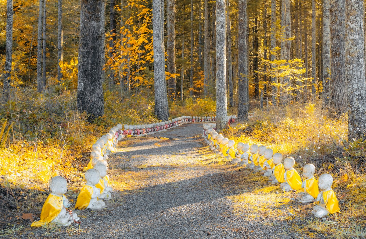 在盧勝彥文集第131册《超度的怪談》,其中一篇「水子靈山莊」一文,有描述山莊水子靈的來歷,大意如下,一夜有無數的嬰靈來祈求根本上師能給嬰靈們一席安立魂魄之地,嬰靈們想待在「彩虹山莊(彩虹雷藏寺)」,請求設水子靈像無數,讓嬰靈得以安住,此時根本上師得到三本尊的微笑示意。由此因緣,在彩虹雷藏寺便可以看到無數水子靈(嬰靈)之像,有立相、坐相,非常莊嚴,非常可愛。
