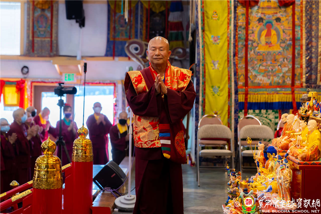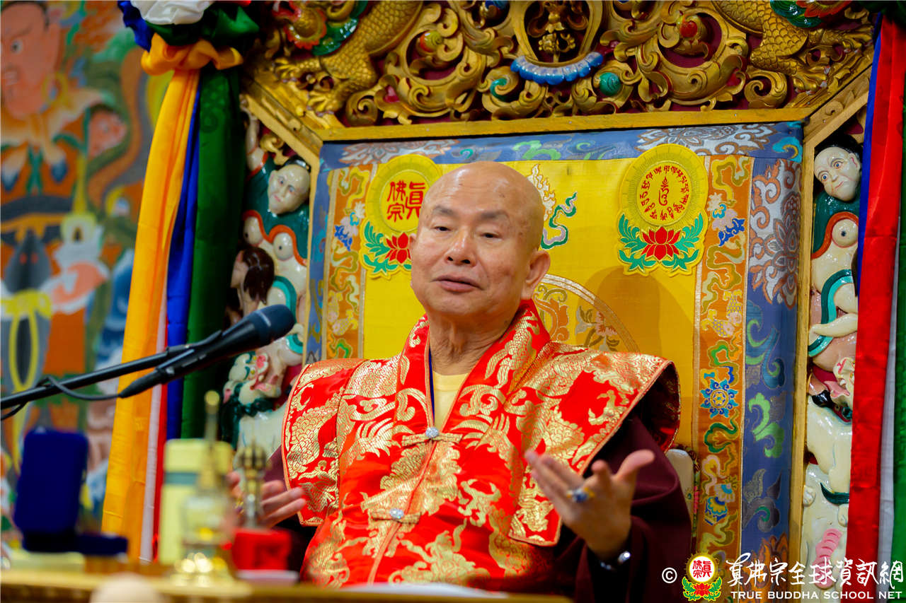 「師尊在真佛宗傳授許多法,弟子若能將法聚集起來,也能受用自我解脫,而非只是馬耳東風,遇到任何問題都能運用方法解決,就是寶積菩薩。」法王說明大菩薩得到很多的法也有用到,真實有受用,能將法寶集在一起也能應用就是寶積菩薩。佛陀有三個法印:諸行無常、諸法無我、寂靜涅槃,也是教導我們看清世間一切變化,應該無我為正覺法寶,讓身心意清淨得到寂靜涅槃。