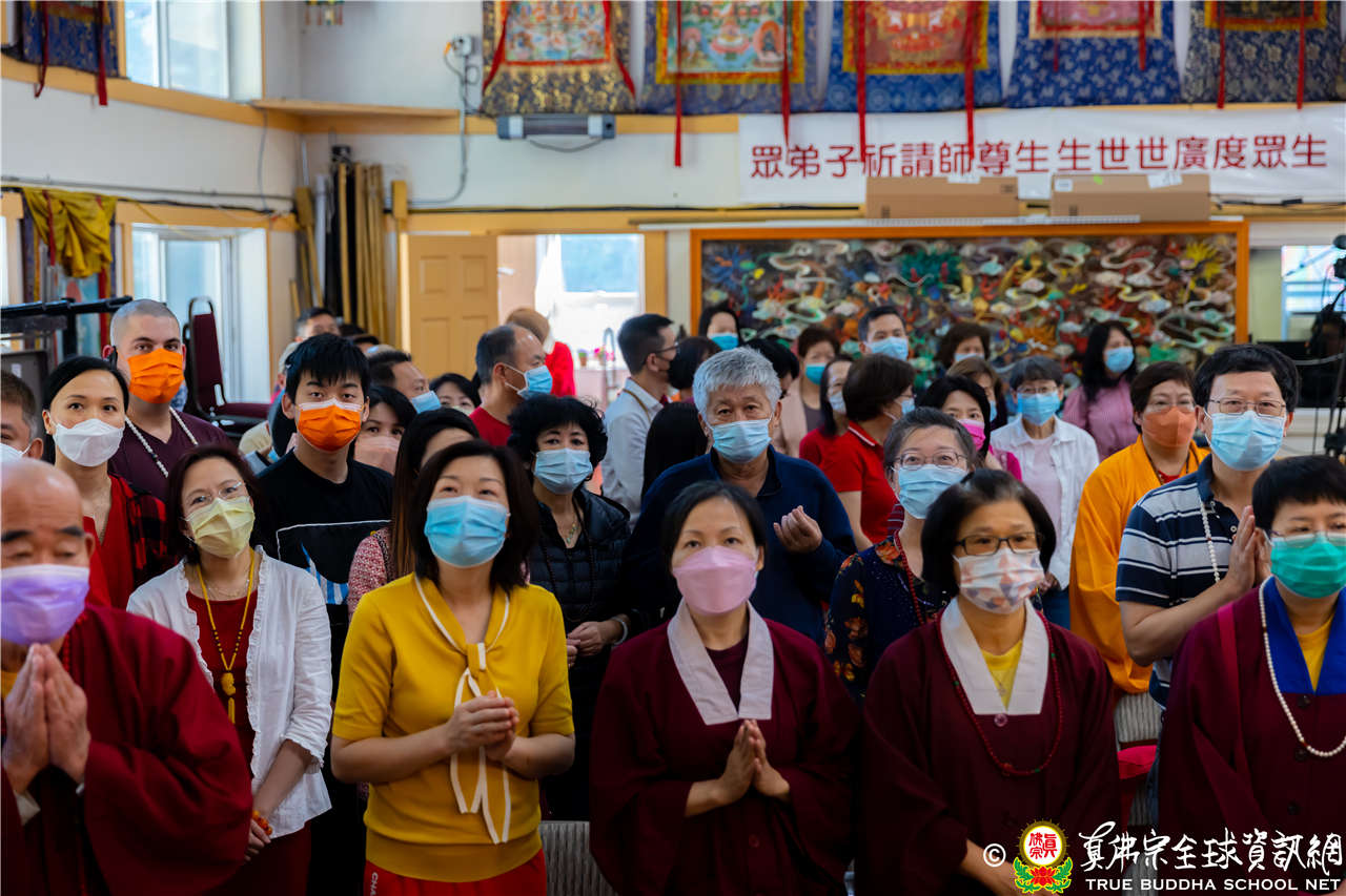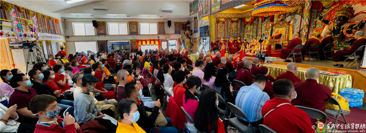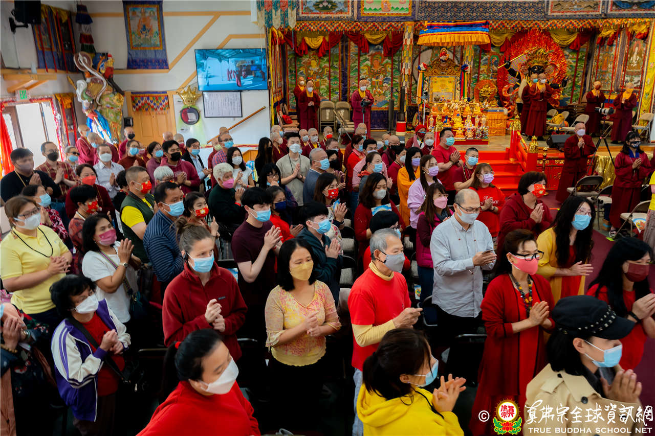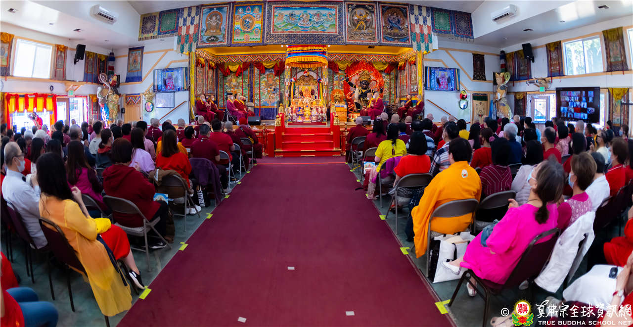最後法王移駕到Zoom前與弟子們互動,弟子們誠摯地感恩師尊開示,並紛紛在鏡頭前感謝法王,法王慈悲加持祝福現場及網路上所有弟子,現場眾弟子接受法王的「勾財天女」灌頂,法會圓滿結束。