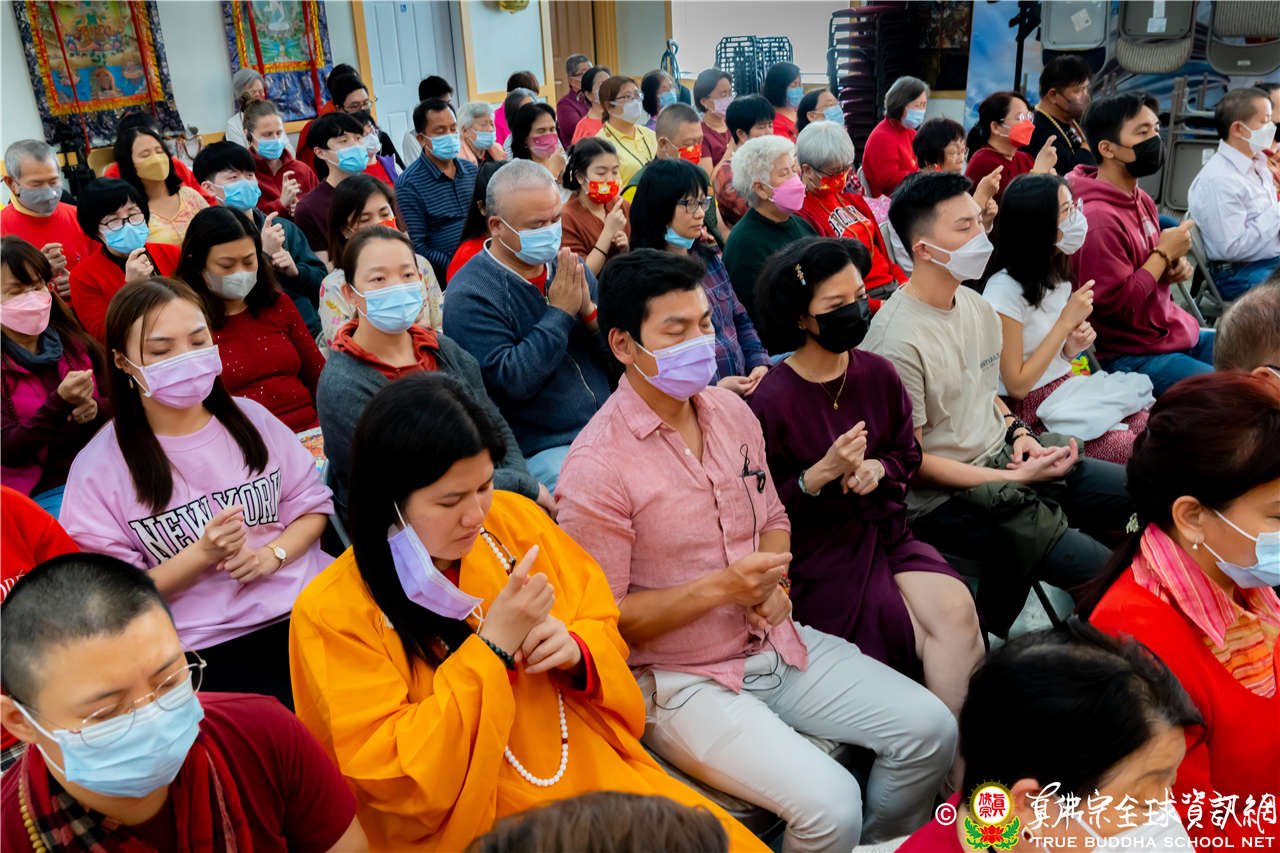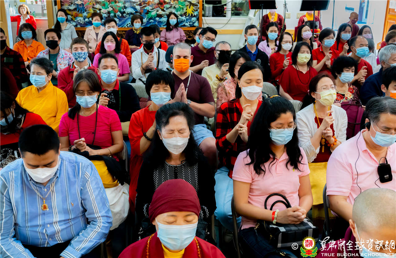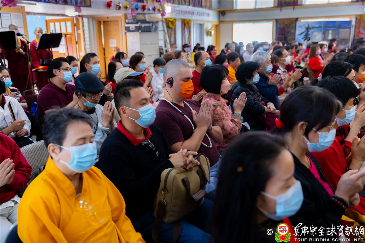最後法王移駕到Zoom前與弟子們互動,弟子們誠摯地感恩師尊開示,並紛紛在鏡頭前感謝法王,法王慈悲加持祝福現場及網路上所有弟子,現場眾弟子接受法王的「勾財天女」灌頂,法會圓滿結束。
