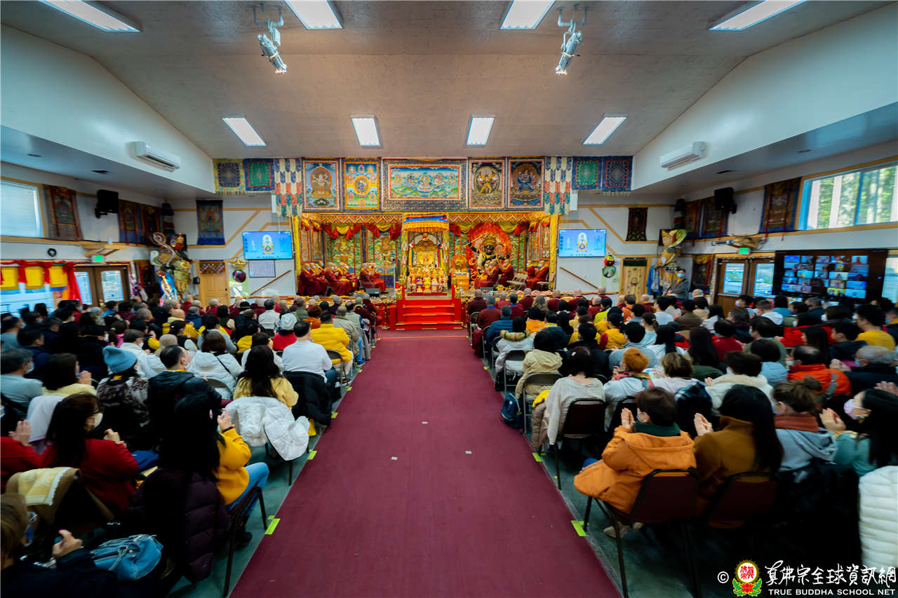 法王也讚歎十方同修會供養的天女型瑤池金母雕刻得非常美麗細緻、年輕莊嚴。每次頂禮祂時都除了感到莫名感動,同時也肅然起敬,仔細一看彷彿變成活的。法王曾說若無瑤池金母,就沒有盧師尊,也不會有真佛宗,大家也不會在這裡。因此,真佛宗與瑤池金母緣份甚深。同時,法王表示因即將返回台灣,這次是今年在彩虹雷藏寺的最後一場佛法開示。