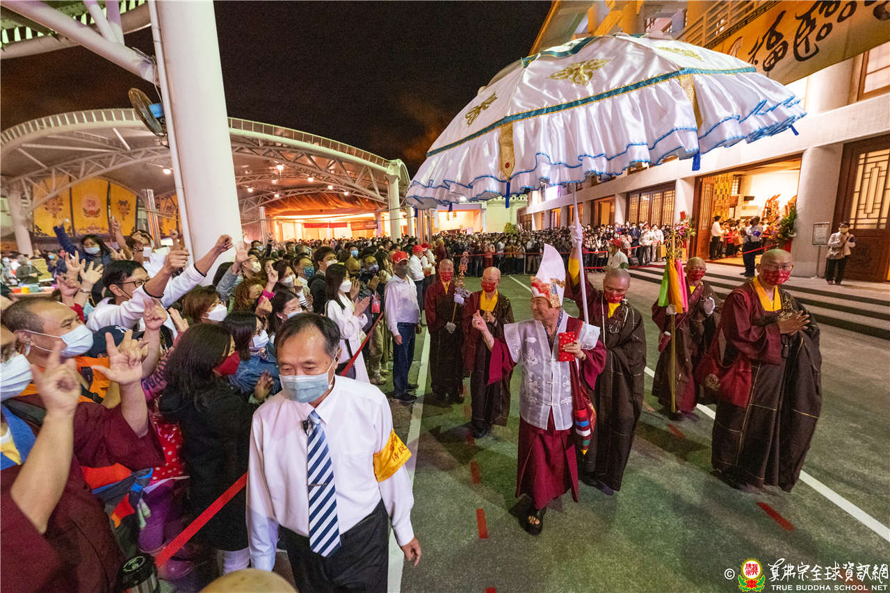 最後法王勉勵大家皈依True Buddha School,就是永遠的貴賓,永遠都是第一名,明天要講第一名的法,每個人都準備將來要成佛的。最後法王慈悲加持祝福現場及網路上所有弟子都能得到「蓮花童子」加持護佑,眾弟子接受法王的「蓮花童子總持灌頂」,法會圓滿結束。