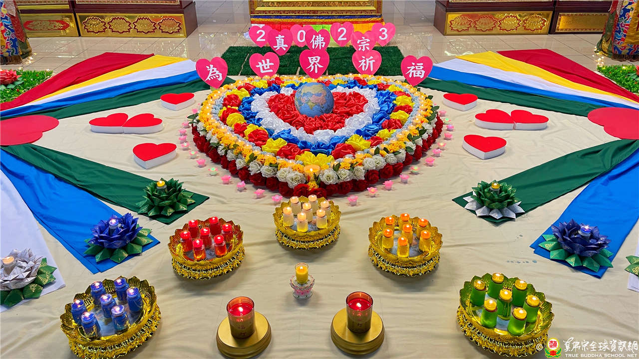 參與的道場並以愛心圖案點燈為世界祈福,希望這份愛心與咒力,讓這世界有多一點光明、驅散黑暗。秉持著真佛宗根本傳承上師教導的菩提大愛,宇宙的大光明海與燈火互相交融、真佛宗同門以共同的念力同修,咒音遍佈了全球角落。