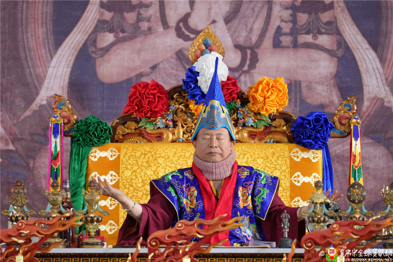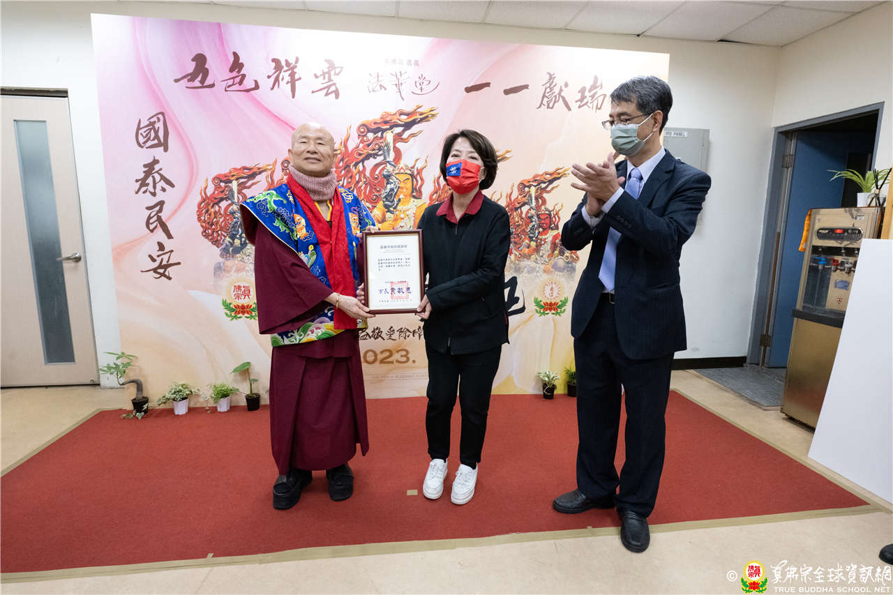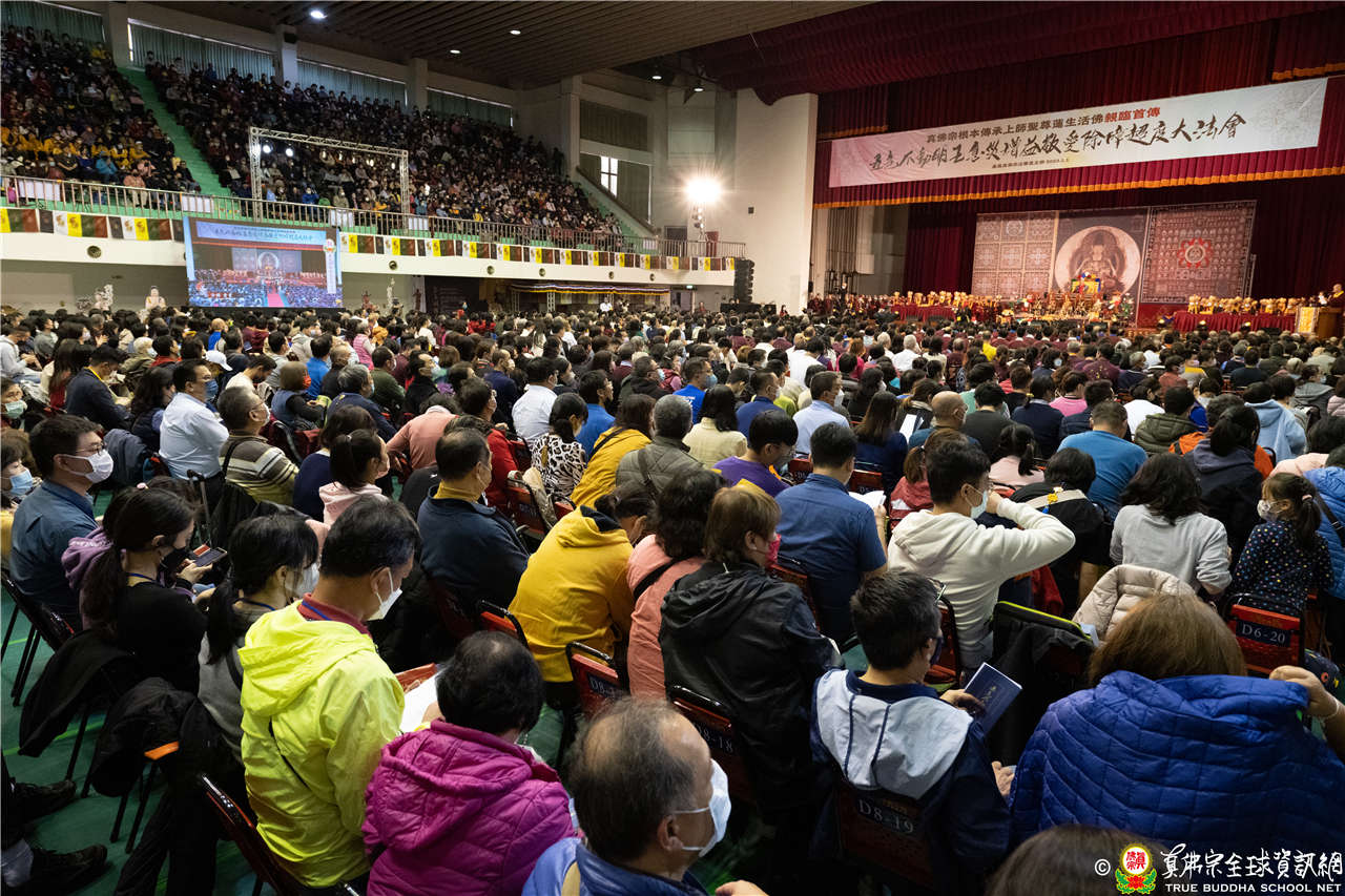 2023年元旦,人人歡喜迎接新一年的來臨。在這人人普慶的一天,台灣嘉義市真佛宗法華堂恭請蓮生法王到嘉義市立港坪運動中心體育館主持「五色不動明王息災增益敬愛除障超度大法會」,首傳「五色不動明王不共大法」。法會現場莊嚴殊勝,台上除了有巨幅的大日如來唐卡,更有金剛界曼荼羅及胎藏界曼荼法相圖。原來「不動明王」是八大明王首座,也是金胎兩部部主「大日如來」的變化身及教令輪。下午兩點,法會開始,大會迎師組恭迎蓮生法王入道場。