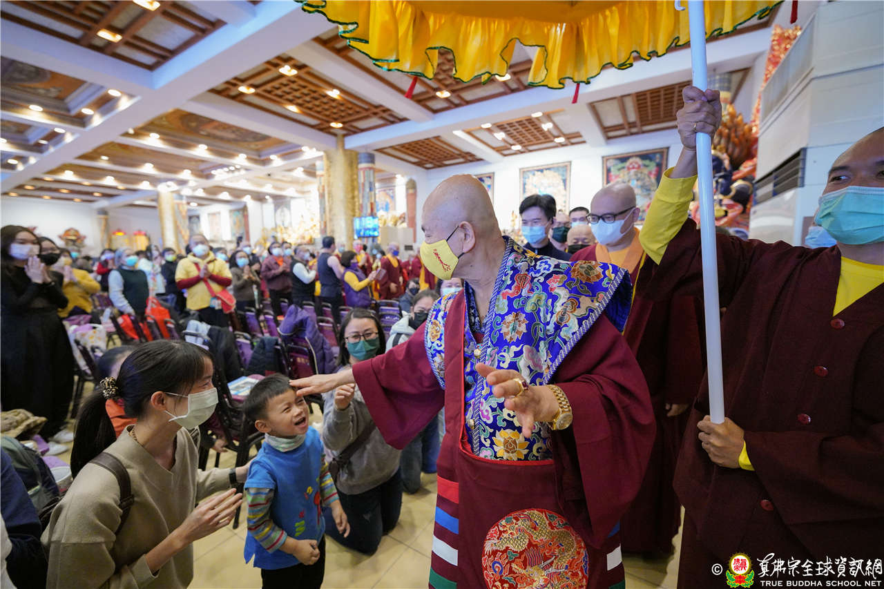 最後,法王通知大家明天將在黃帝雷藏寺去祭祖,主壇【金面金母息災祈福超度賜福迎財神水供大法會】,首傳「萬佛手無極眼金母超勝大法」,並恭祝大家過一個快快樂樂的發財年。