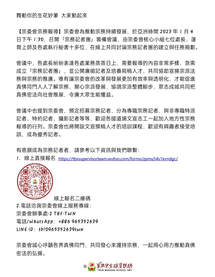 有意願成為宗務記者者,請參考以下資訊與我們聯繫: