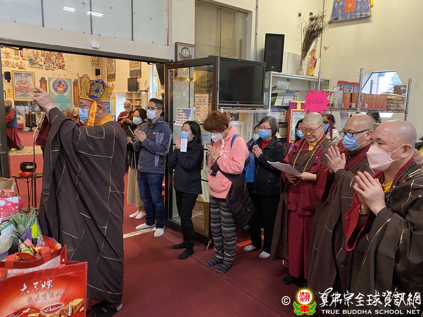 送別儀式結束後,新住持蓮吟法師恭敬的把壬寅年賀諤大將軍的名牌請下來,然後將癸卯年太歲星君皮時大將軍的名牌請上去,換上新的豐盛供品,隨即展開第二場儀式。釋蓮琴上師帶領大眾迎接新任的皮時太歲星君上任,祈求皮時太歲星君鎮寺吉祥,加持所有安奉太歲的報名眾等,在新的一年健康快樂、合家幸福、財源廣進。