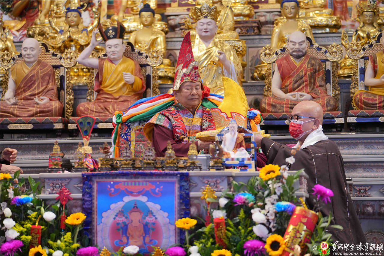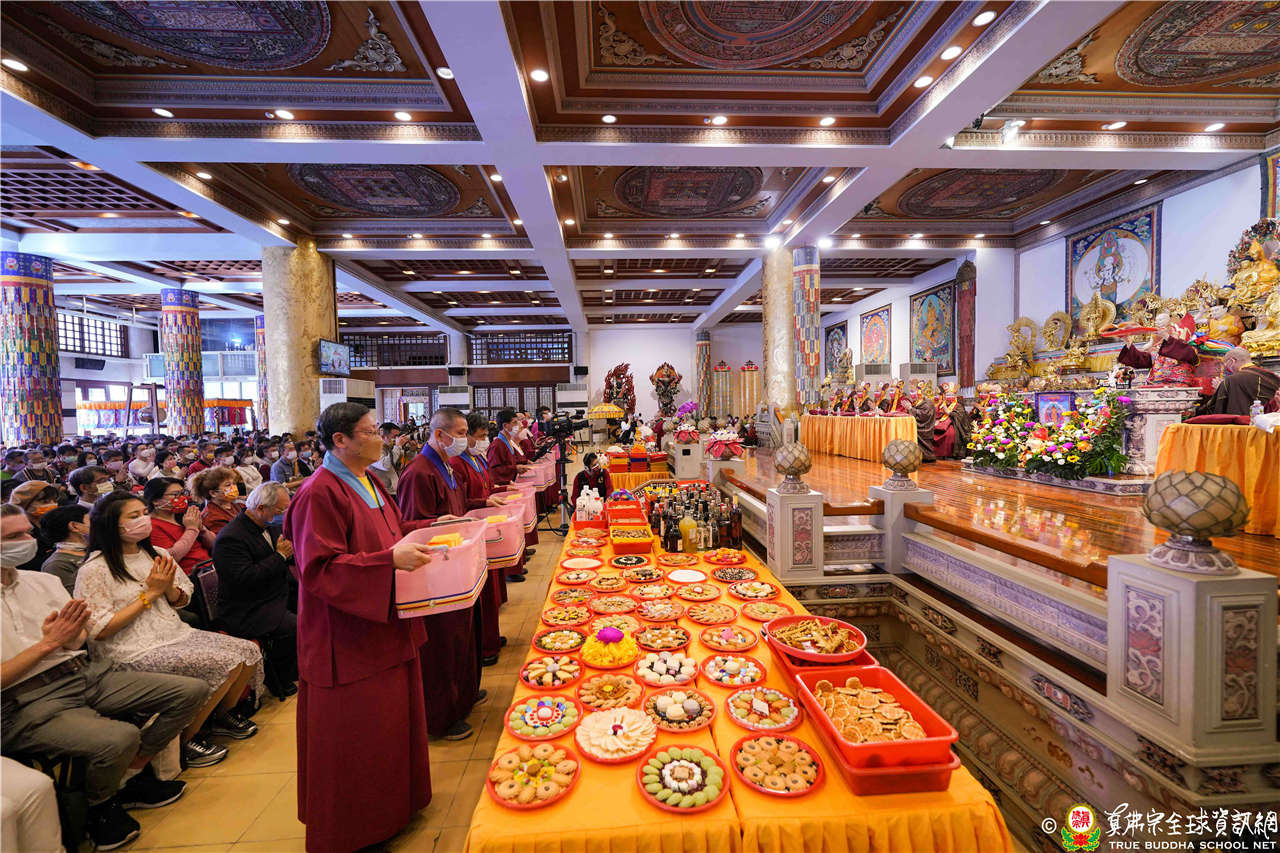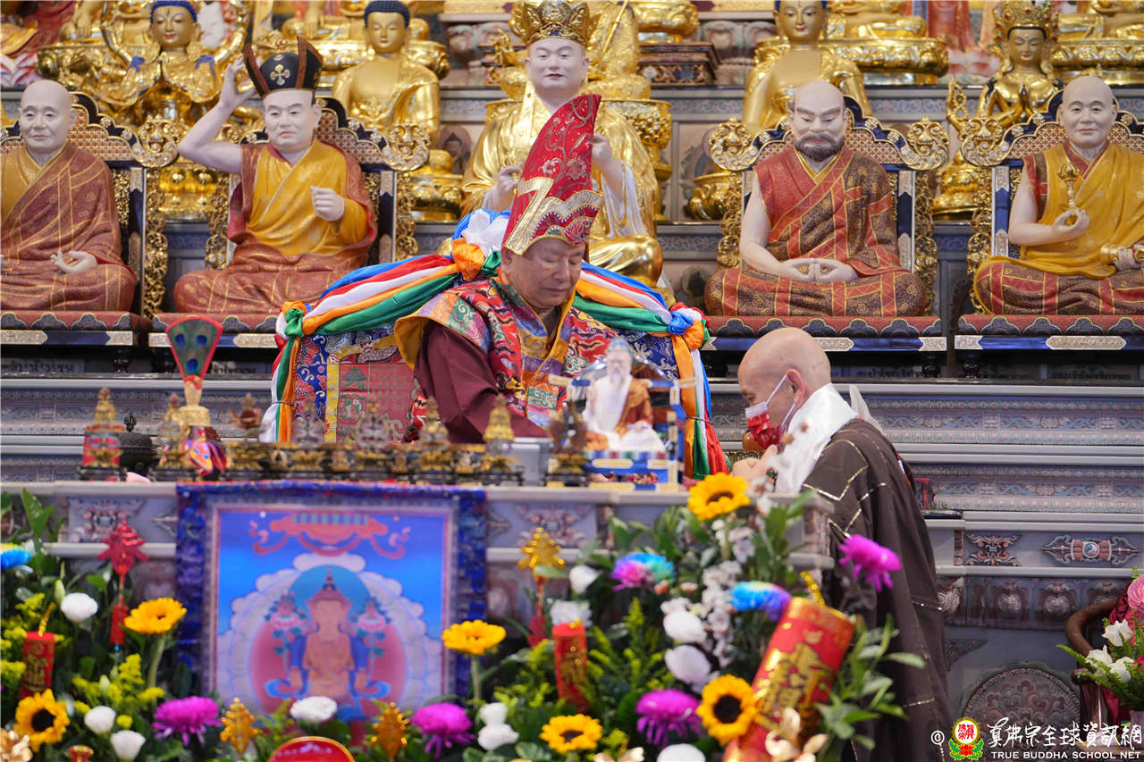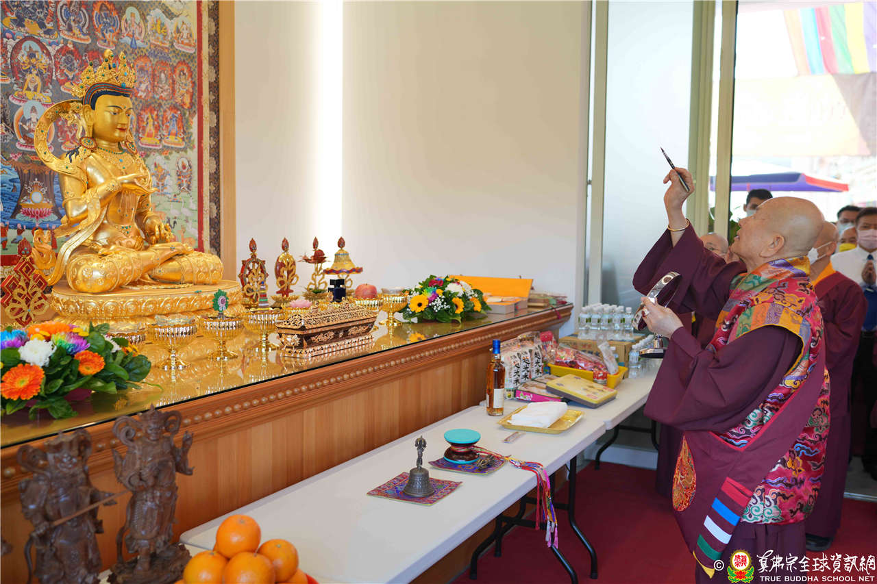 法王表示今日已經為台灣雷藏寺的淨化殿開光,殿裡供奉的金剛薩埵是消業本尊。大家在每年正月初一,可到淨化殿請上師、教授師或法師為自己做淨化,也就是「一掃煩惱清、二掃霉運去、三掃業障消除」。除了大年初一,平日遇到障礙、業障或健康及事業等種種問題,也可到台灣雷藏寺這裡求淨化。淨化後,就已全部重生,福分也會降臨。