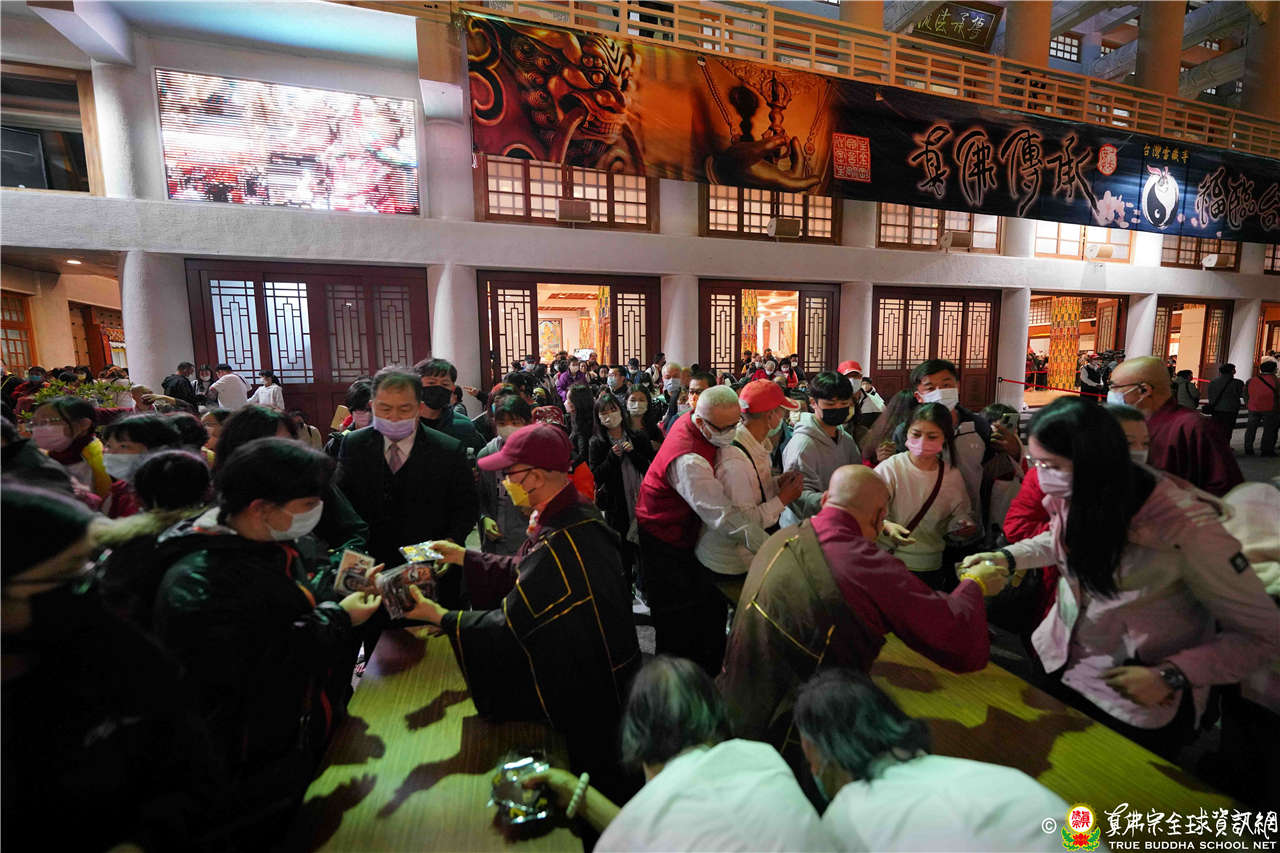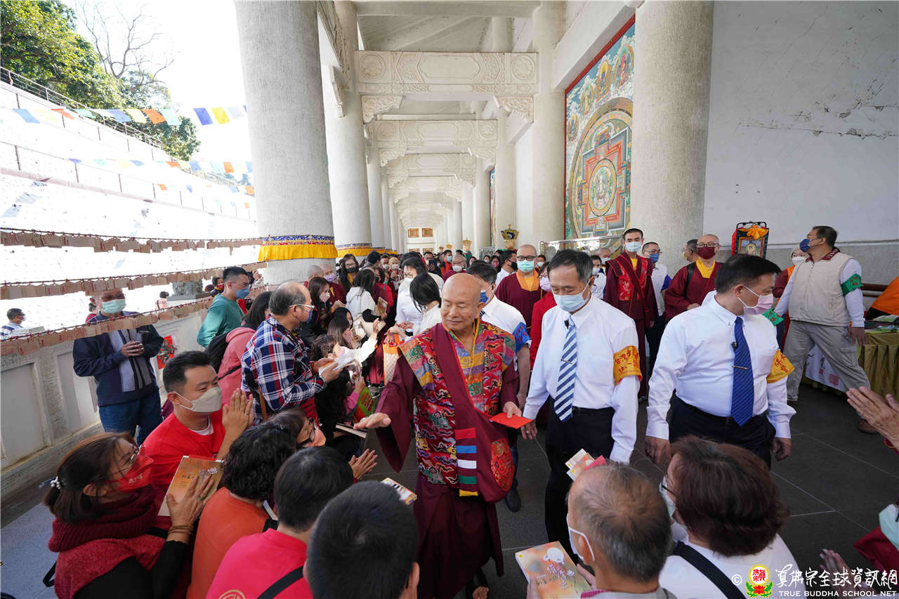 隨著法王精彩的開示結束後,法會也到了尾聲。本次法會法王賜授與會大眾「彌勒菩薩不共法」及「彌勒白雲觀」灌頂,大眾也在現場領取法王賜福紅包,人人歡喜而歸。