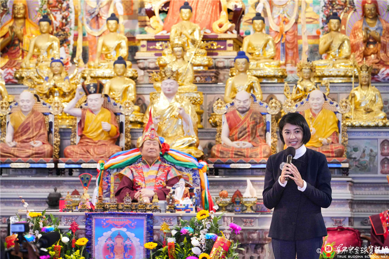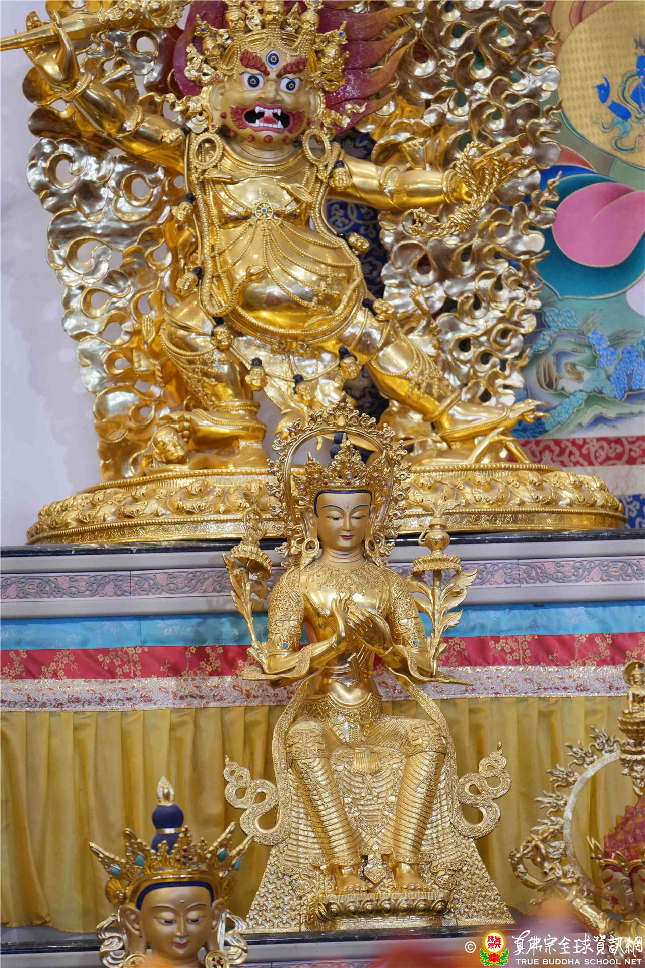 「這裡還有公告。」1月29日是高雄大義雷藏寺開光安座大典及「能摧壞度母」的法會,歡迎大家參與,祈求「能摧壞度母」把業障及阻礙都摧毀掉。如果自身覺得有困難,無論是身體、心靈、事業或因緣的障礙,祈求「能摧壞度母」把障礙摧壞,就會變得更好。此外,台灣雷藏寺也將舉行滿願童子法會。此滿願童子不一般,祂有著釋迦摩尼佛的法力,可以滿眾生的願。滿願童子除了能夠滿眾生的願,祂本身能夠知道所有人的一切因果,而且祂飛行非常迅速。更難得的是,滿願童子很容易相應,相應後便具足五個神通。法王強調這兩個法會都非常殊勝。最後,法王提到真佛般若藏將參與在台北的書展,並表示「書本身是師尊的心,師尊是蓮花童子,蓮花童子就是大福金剛,你把書請回家,就是請財神到我家。」